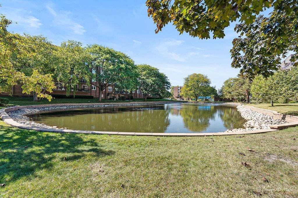 Welcome to this stunning, fully updated 3-bedroom larger corner unit with an open, sun-filled layout with western exposure. From the minute you enter the large, inviting foyer with massive guest closet you feel at home! This tastefully decorated standout unit features 3 spacious bedrooms and 2 modern fully updated bathrooms with new copper plumbing and double sinks. Enjoy the cozy and charming living room, dining room and cooking in the custom chef's kitchen with stainless steel appliances, white shaker cabinetry, quartz countertops, and a massive 16-foot island that comfortably seats 10 - perfect for entertaining! Primary bedroom w/huge walk-in-closet features private bath with generous size shower and double sink. More updates include new hardwood floors, furnace, a/c and closet organizers. In-unit side by side washer and dryer. Huge balcony. Designated indoor heated garage parking. Desirable, rarely available Washington Courte unit with beautiful grounds, tennis court and swimming pool. Common areas like hallway, lobby, and balcony were remodeled in 2020. Close to Golf Mill, local restaurants, schools and public transportation! Make it your home today!!