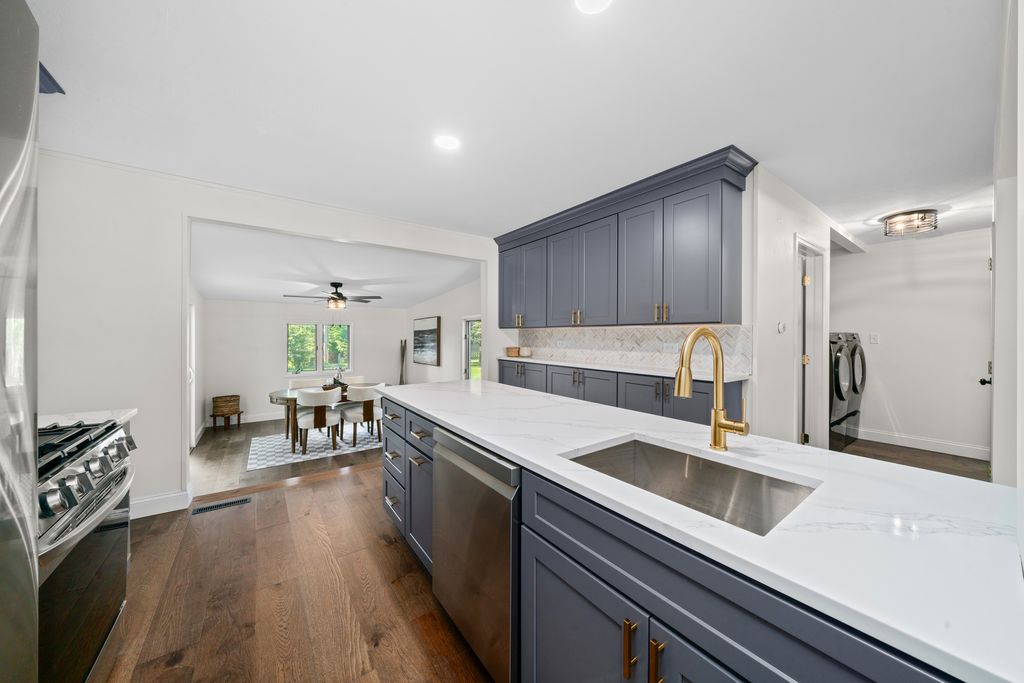 $1,000 BUYER CREDIT NOW OFFERED!!! 1059 Zelma Road is oozing with charm, character, and has been fully remodeled, top to bottom! This incredible 1.5 story, Cape Cod style home, boasts 4 bedrooms (including a 1st floor primary suite along w/ 1st floor laundry!), 3.5 bathrooms, an attached 2 car garage, and just over 2,000 finished SF. Located on the Sandwich side of the desirable Lake Holiday community, not only will you enjoy all the improvements that make this home truly MOVE-IN READY, but you'll also get to enjoy the rest of Summer at the lake! Mature landscaping, an extended concrete driveway to accommodate extra parking, and a large concrete front porch welcome you as you prepare to enter your new home. Stepping inside, rich hardwood floors greet you and flow throughout the 1st floor which includes an open concept sun lit living room, a BRAND NEW kitchen feat. custom soft close cabinetry, quartz countertops, stylish backsplash, + all new appliances, and a step down into the dining room w/ a convenient glass sliding door that provides access to the backyard & deck perfect for Summer BBQ's! Also on the 1st floor is a sleek full hall bathroom w/ tiled flooring, a new vanity, fixtures, and a tub with a tiled shower surround, along with a brand new laundry space w/ matching cabinets from the kitchen, quartz countertop, and brand new washer/dryer. Last but not least, is the newly reconfigured primary suite! Hardwood floors, fresh paint, new fan, added closet, and connection to the newly added en suite bathroom showcasing a beautiful double vanity, tiled flooring, and a walk-in tiled shower! Leading you up to the 2nd level is an opened up staircase with new custom railing & spindles, and brand new carpet flowing throughout the upper level. At the top of the stairs you'll see a loft area that could serve many functions, as well as a newly reconfigured full bathroom complete w/ tiled floors, new vanity, and a newly added tiled shower with a custom glass door. On either side of the bathroom are 2 mirror image bedrooms w/ vaulted ceilings and great natural light! Last but not least, heading down to the finished basement you'll find the spacious family room w/ a built in updated entertainment center, an updated and reconfigured 1/2 bath w/ new toilet, tiled floors, and vanity, plus a rec/bar area to do with as you please. Finishing out the basement, you'll find the 4th bedroom w/ a closet that is adjacent to the utility room with cabinets for storage!. **OTHER MAJOR IMPROVEMENTS INCLUDE: New roof ('24), New HE Furnace ('24), New HE Water Heater ('25), majority of the home has new plumbing ('25), and a FULL HOUSE GENERAC GENERATOR! This is the one you've been waiting for - let's make this YOUR home so you can 'Be On Vacation Every Day of the Year!'