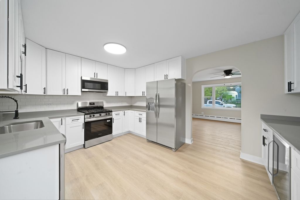 Fully rehabbed 3 bed, 2 bath ranch with a full finished basement & brand-new updates throughout! Step into an open-concept layout filled with natural light, featuring brand-new luxury vinyl flooring, fresh paint, updated trim, and a new picture window in the living room. The kitchen is fully updated with new custom 42" cabinets, quartz countertops, subway tile backsplash, Frigidaire stainless steel appliances, and a custom wine rack/mini bar with beverage fridge - perfect for entertaining. Two bedrooms feature new carpet, while the primary suite includes luxury vinyl flooring and a fully updated ensuite with new shower, vanity, quartz countertops, updated fixtures, & fresh paint. Enjoy a spacious finished basement with industrial-style ceilings, new carpet, multiple storage rooms, and plenty of space for recreation or entertaining. A brand-new oversized deck is conveniently located just off the kitchen, ideal for outdoor entertaining or relaxation! Located on a quiet street, yet minutes from downtown Yorkville - close to restaurants, shopping, parks, and more. Truly move-in ready - nothing to do but unpack and enjoy! Agent owned.
