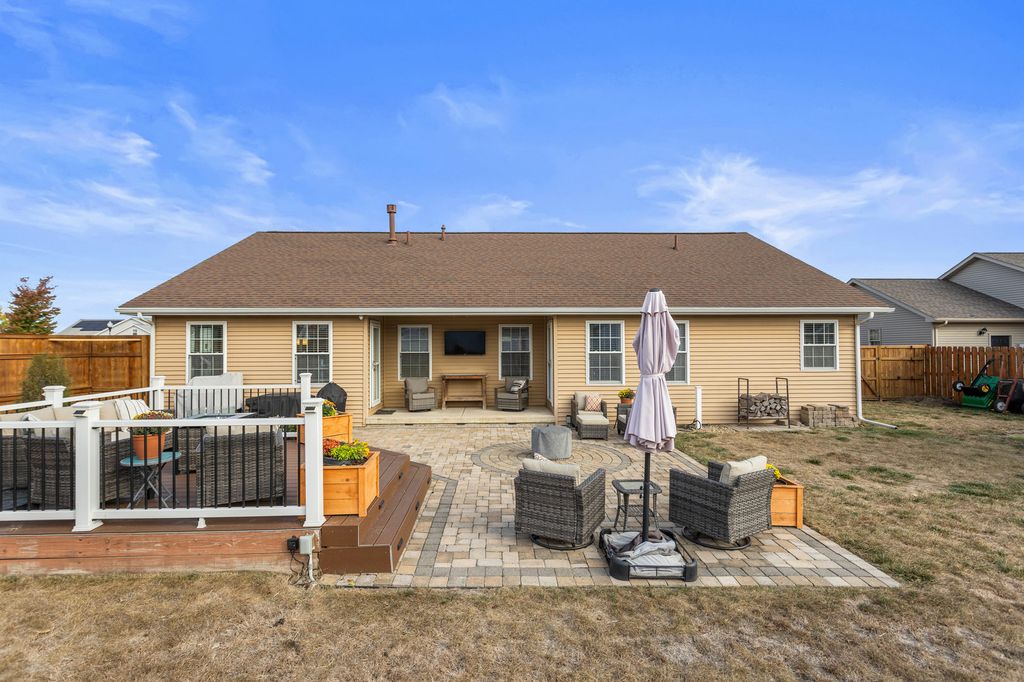 ***NEW PRICE ALERT***!!! A stunning CORNER LOT CASA awaits YOU! At 109 Heritage, be star-struck at this beautiful CUSTOM-BUILT, ONE-OWNER HOME, cleverly designed and refreshed with tasteful delight! Resting on a 100 x 126 CORNER LOT, your entry is greeted by a welcoming gathering space in the living room with FIREPLACE and gorgeous FEATURE WALL extending to the CATHEDRAL CEILING to give a spacious feeling with desired Southern exposure natural light. Step into the GOURMET KITCHEN, in awe of the SLEEK NEWER APPLIANCES, CONTEMPORARY CABINETRY GALORE, dining area, BREAKFAST BAR, POWER WHERE IT COUNTS with ABUNDANT OUTLETS for all your kitchen gadgets! Just off the kitchen, the laundry room and WALK-IN PANTRY with "hidden", TANDEM MECHANICAL AND COMMUNICATION CENTER CLOSET including a TANKLESS HWH. How's that for practical, creative convenience!?! WOW! When twilight time arrives, retreat to the ELEGANT PRIMARY SUITE w/LOUNGE, a space with endless possibilities, reading, relaxing, nursery, etc. The lovely remodeled Primary SPA is warm and inviting with a WALL-SPANNING MIRROR, QUARTZ-TOPPED DUAL VANITY w/SHIPLAP BACKDROP, STYLISH LIGHTING ACCENTS INCLUDING TOE-KICK LIGHTING UNDER CABS, LUXURIOUS WALK-IN SHOWER with HARD-SURFACE SURROUND and an always desired WIC. Updates continue with the NEWLY REMODELED HALL BATH too! Add in the NEW LUXURY VINYL PLANK FLOORING, FRESHLY PAINTED INTERIOR, NEW LIGHT/FAN FIXTURES throughout to check everything off your list of wants/needs. Oh wait! There's MORE! A true FENCED-IN BACKYARD PARADISE with EXPANSIVE PAVER ENTERTAINMENT AREA, STEP-UP MAINTENANCE-FREE DECK with STEP-LIGHTING bordered with white vinyl post/iron-rod protective rail, LIGHTING CONTINUES ON FENCE PANELS in addition to not one but TWO GATES! Add the 8X14 GARDEN SHED w/RAMP for storage as a huge plus. Truly an amazing place to tour, oh wait! There's even MORE! A 2-Car METAL-FINISHED INTERIOR GARAGE! Say what!?! A premium feature to any home including the popular WHITE-FINISHED METAL, OODLES OF CABINETRY, VENTLESS WALL HEATER, well planned for and ABUNDANT ELECTRICAL OUTLET accessibility and a DOUBLE-UTILITY SINK. Another surprise added feature is the 3-CAR DRIVEWAY approaching the 2-CAR garage utilizing outdoor space to the max! Whew! That's it in a nutshell until you can schedule your private tour TODAY! There's no place like home at 109 N. Heritage. Catch this Casa while you can!