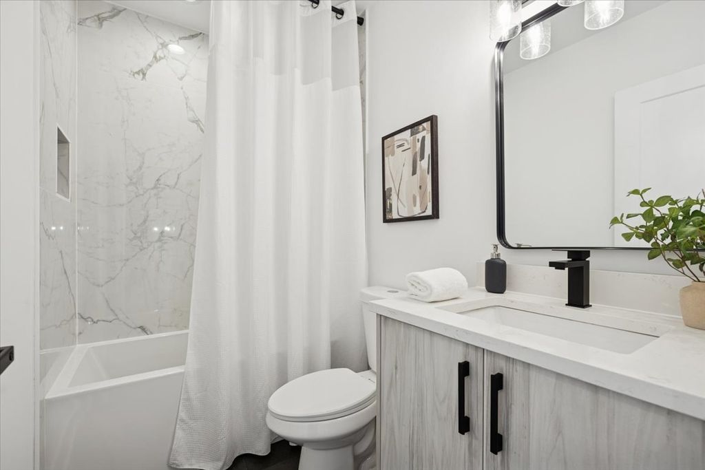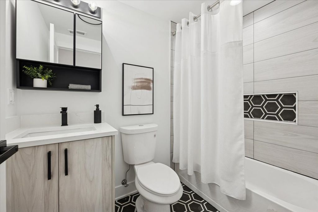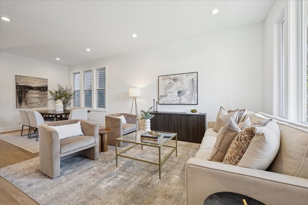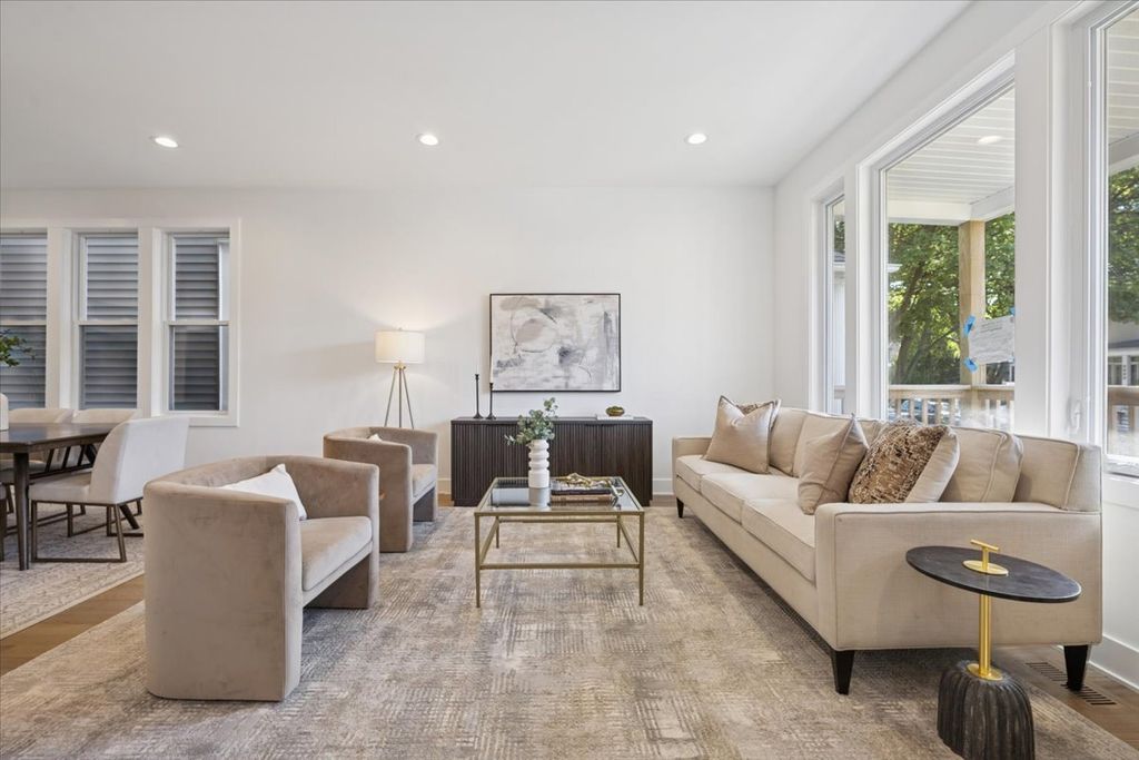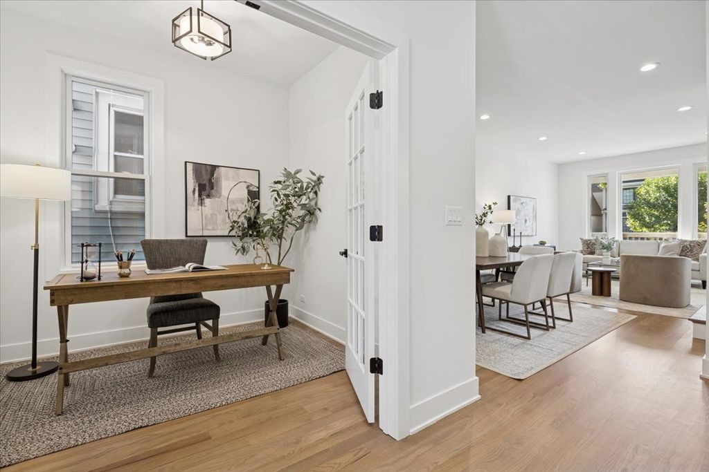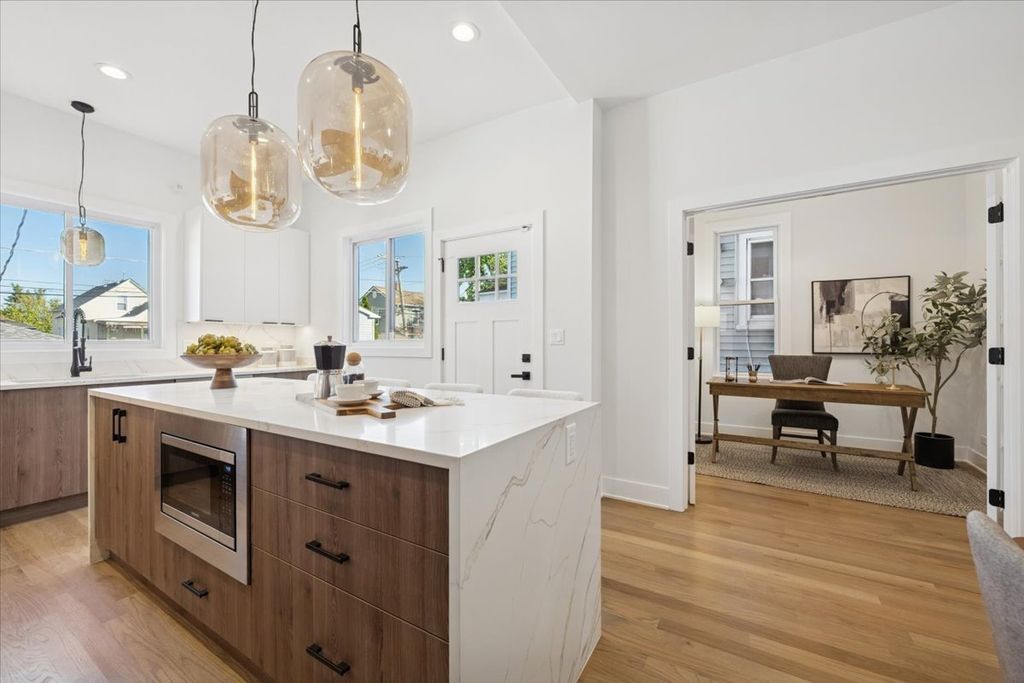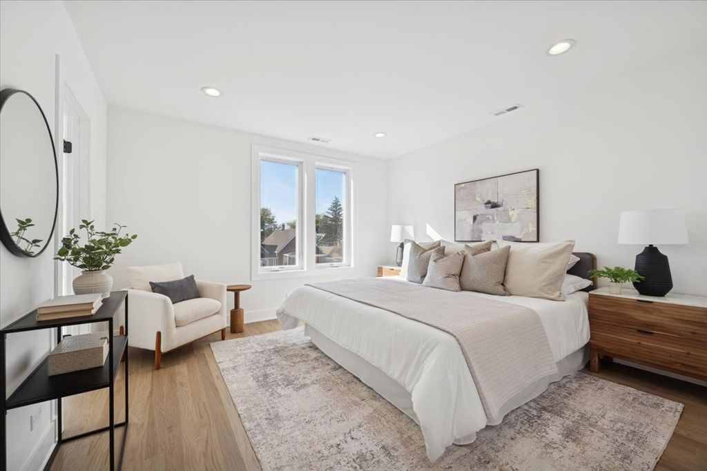 Nothing to do but move in to this flawlessly renovated 4-bedroom, 4-bath single family home in Irving Park! The current owner brought this home down to its studs, added a second floor, and completely redesigned the space with clean, modern finishes. A classic front porch with ample space for seating or a porch swing is the ideal space to relax. Natural light from large windows with south, east, and west exposures floods the entire living space on the main level. An open floor plan flows seamlessly through generous living spaces including a living room with enough space to accommodate two separate seating areas and a dining area with ample space to host both dinner parties as well as intimate affairs. Glass French doors open into the perfect home office conveniently located just off the kitchen. The chef's kitchen is appointed with stylish features such as veined quartz counters, Marfa cabinetry, stainless steel Bosch appliances, and access to a private deck overlooking the backyard - the perfect place for dining al fresco. A full bathroom completes this level. Upstairs, a serene primary suite features a large bedroom with south-facing views overlooking Richmond Street, a huge walk-in closet, and an elegantly appointed ensuite bath. Two additional bedrooms and another full bath occupy this level along with a closet fully plumbed and ready to hook up your washer and dryer. The lower level has a family room, a fourth bedroom, full bath, and an additional room perfect for a den, another home office, playroom, or hobby room. Plenty of green space abounds in the backyard, which leads to the detached, 2-car garage. This special home is situated on a quiet, tree-lined street within walking distance to Lane Tech and DePaul Prep with easy access to public transportation and the expressway, Target, Mariano's, shopping, restaurants, and all Irving Park has to offer. Welcome home!