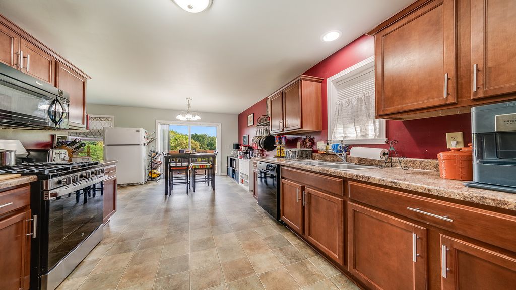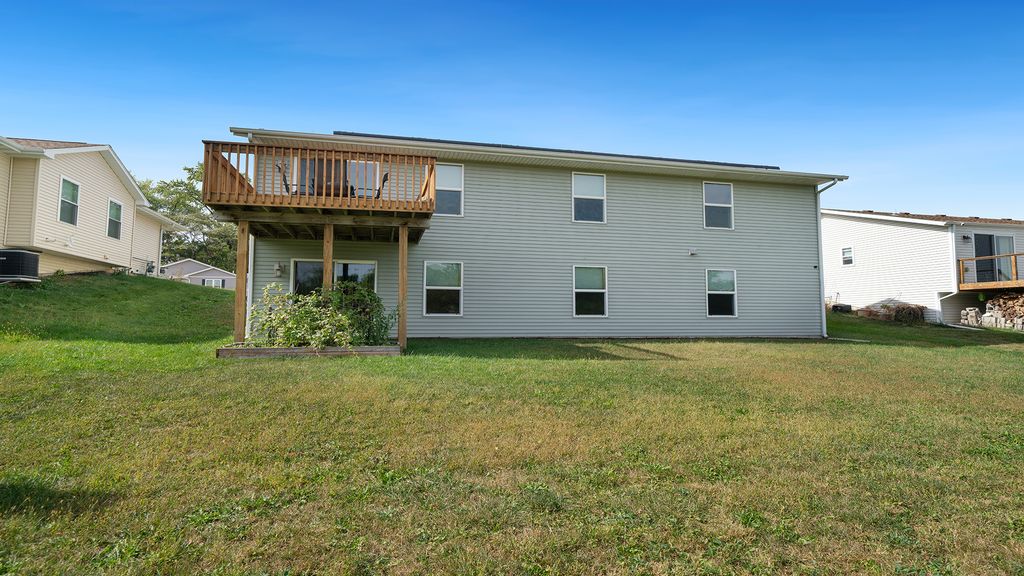his ranch-style home near Sandy Hollow Golf Course offers comfort and convenience with quick access to I-90, schools, and shopping. The main level includes 3 bedrooms and 2 full baths, with a primary suite featuring its own private bath. The living room flows into the eat-in kitchen with a new stove and doors leading to a deck overlooking the backyard. Added highlights include first-floor laundry and classic 6-panel doors. The full walk-out basement provides 2 additional bedrooms and direct access to a covered patio, bringing the total to 5 bedrooms. An attached 2-car garage completes the layout. Updates include water heater (2014), furnace and AC (2016), and original roof. Solar panels (rented) add efficiency. This home blends space, function, and location.