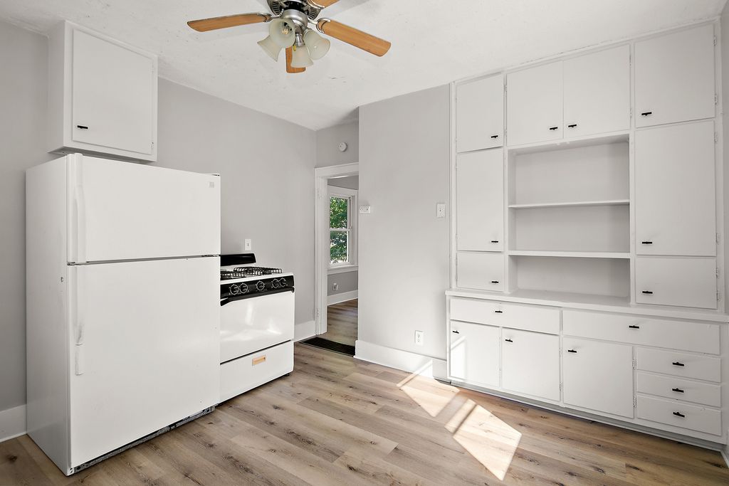 Tucked away in the heart of Kankakee, Illinois, this charmingly updated 2-bedroom, 1-bath gem effortlessly blends modern amenities with cozy appeal. Boasting a nearly new roof, vinyl siding, and wrapped aluminum soffits, the exterior is both durable and inviting. The fenced backyard and detached 1.5-car garage add extra convenience and privacy. Inside, you'll be welcomed by a fully revitalized living space with fresh paint, stylish new light fixtures, and brand-new vinyl plank flooring that flows seamlessly into the kitchen. The updated kitchen comes complete with all appliances, refinished cabinetry, and modern countertops. The bathroom has been tastefully refreshed, and upstairs you'll find two inviting bedrooms with rustic hardwood floors and more updated fixtures. With a newer furnace, central air, a recently replaced hot water heater, and a full basement, this home is truly move-in ready. Don't miss out-schedule your private showing today!