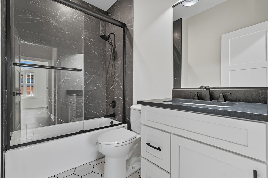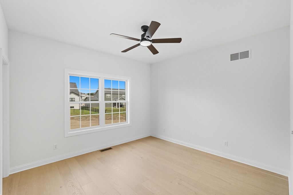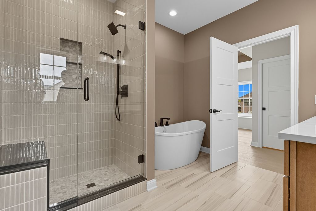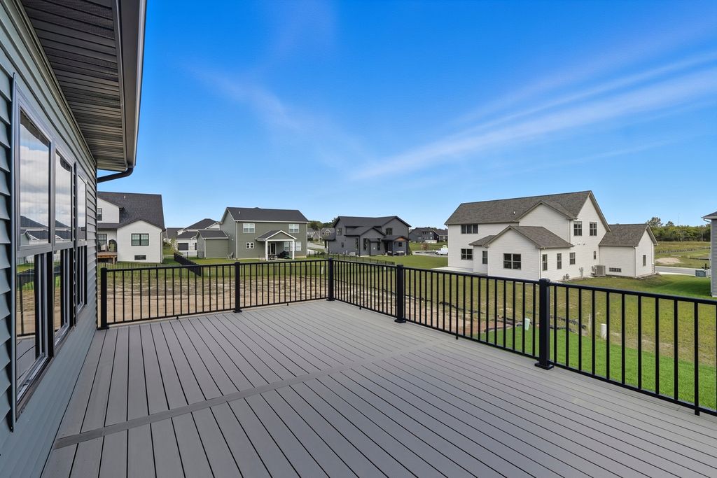 Step into this thoughtfully designed new-construction ranch, where quality and style are evident in every detail. Spanning 1,890 sq. ft, the home features engineered hardwood flooring throughout, a soaring two-story foyer with chandelier, and a bright great room with cathedral ceiling, anchored by an electric fireplace with a wood mantle. Large Andersen windows with black exterior trim fill each room with natural light. The kitchen is outfitted with a GE Slate appliance package, quartz countertops, soft-close cabinetry, and countertop seating that opens to the great room-ideal for everyday living or entertaining. You'll appreciate the convenience of a pantry cupboard with pull-out shelves, under cabinet lighting, and large workstation sink. The breakfast room leads out through sliding glass doors to the oversized composite deck. Ceiling fans throughout enhance comfort, while solid-core doors and oak stairs with a custom railing add refined touches. A main-level laundry room with sink adds convenience. Retreat to the primary suite with tray ceiling, a custom window storage bench, walk-in closet, and ensuite bathroom. The primary bath features a custom-tiled walk-in shower with bench, glass doors, and handheld sprayer, a deep soaker tub, and dual vanities. Two additional bedrooms on the main floor offer versatility, including a walk-in closet and vaulted ceilings. The second full bathroom is finished with custom tile-work and a quartz vanity top. The daylight basement has 9-ft walls, is pre-plumbed for a future bathroom, and awaits your personal finishing touches. Outdoors, enjoy a covered front porch, fully landscaped yard with irrigation, and a three-car finished, insulated garage pre-piped for a heater. A tankless water heater rounds out the modern conveniences. Every element of this home blends craftsmanship with thoughtful design, creating a space designed to live beautifully.