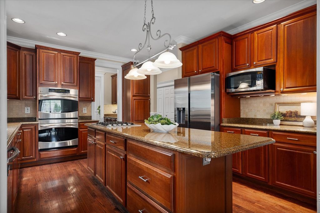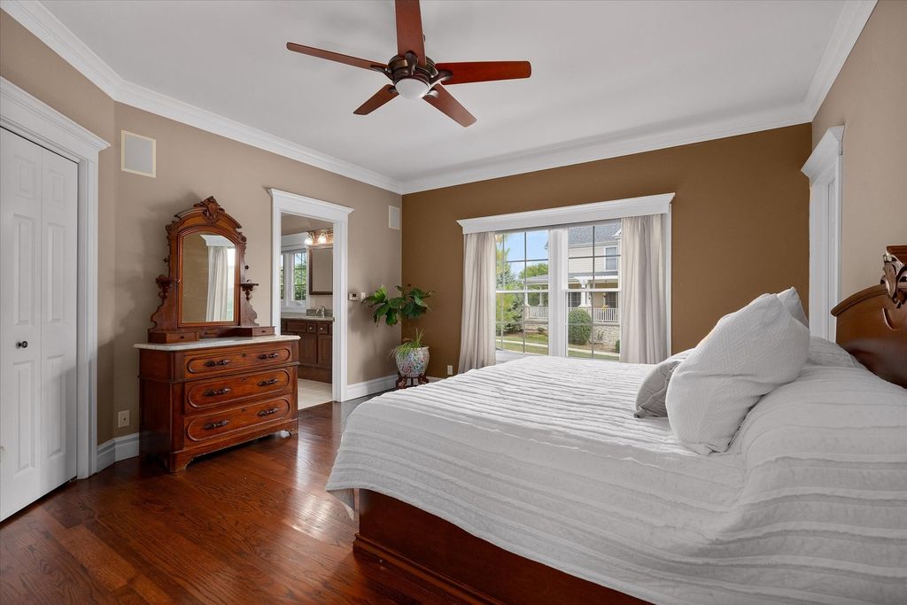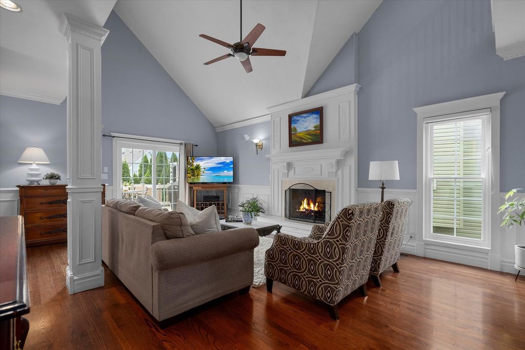 In The Villages at Mill Creek, you can enjoy the good life without the worry of yard work or snow shoveling. Perfect for a busy professionals or an active downsizer who values quality and space without the upkeep, this Village Home offers a rare combination of convenience, privacy, and plenty of room to live and entertain. Mill Creek is one of Geneva's premier golf club communities, offering a lifestyle that combines natural beauty with resort-style amenities. Entering from the garage, you step into a mudroom that leads directly to the lower level, where a finished walk-out basement features a custom bar, movie area, and game table-ideal for entertaining. A large unfinished section offers ample storage and a workshop area, while sliding doors open to a private patio. A split staircase brings you to the main level, the heart of the home. Here, vaulted ceilings and a cozy fireplace anchor the family room, which opens to a private deck. The gourmet kitchen, complete with granite countertops, cherry cabinetry, stainless steel appliances, a walk-in pantry, and butler's pantry, flows seamlessly into the dining area. French doors lead to a light-filled office, and the main-level primary suite provides a private bath and a peaceful retreat. Another split staircase leads to the upper level, where you'll find two generously sized bedrooms joined by a Jack & Jill bath, a large versatile loft with custom built-in bookshelves, and a separate cozy nook that can serve as a reading spot, small office, or flex space. With approximately 2,700 sq. ft. above grade (3,700 sq. ft. including the finished basement), 3 bedrooms, 3.5 baths, and two outdoor living spaces, this home delivers flexibility, privacy, and plenty of room for both relaxation and entertaining. Throughout, you'll find custom millwork, hardwood flooring, recessed lighting, crown molding, and transomed doors-all signs of exceptional craftsmanship. The garage adds further practicality with an epoxy-coated floor and storage cabinetry. Impeccably maintained and move-in ready, this home allows for a stress-free transition, with quick close possible-just in time to enjoy the holidays. Beyond your door, Mill Creek offers miles of walking and biking trails, neighborhood parks, natural preserves, a golf club, community pool, and town center-all making this master-planned neighborhood one of Geneva's most desirable places to live.