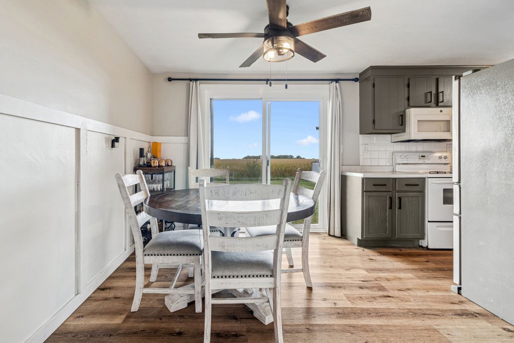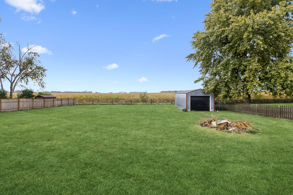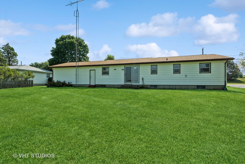 Located in unincorporated Dekalb, this ranch home sits on a large .38 acre lot and backs to farmland providing beautiful country views. This charming home offers 3 bedrooms and 1.5 baths. The cozy living room offers LVP flooring and large windows that allow for natural light. Enjoy the tranquil views from the roomy eating area that features board and batten wall accents! Galley kitchen features LVP flooring, pantry closet, freshly painted cabinets, new countertops ~ sink ~ dishwasher (2025) and new refrigerator (2024)! The 3 bedrooms all feature the original hardwood floors! Full bath with large shower (no tub to climb in and out of), LVP flooring, new vanity countertop, shiplap wall accents and updated mirror and lighting! The full unfinished basement provides unlimited potential to double the living space! The attached 2.5 car garage with exterior access to the fenced in backyard and the large outbuilding ( 31 X 13 ) provide ample storage. Large driveway offers plenty of off street parking. Zoned Electric heat ~ each room has it's own thermostat! Numerous updates include: Front door / Sliding Glass Door / Back Service Door (2025), LVP Flooring (2023), Barn Door added (2023), Board and Batten (2024), Roof (2019), Walk in Shower (2015), Water Heater (2021), Water Tank (2018) Plus you'll find updated paint, lighting and hardware throughout! Conveniently located near NIU and Sycamore! Well is on this property and shared with two neighbors (both are metered connections).