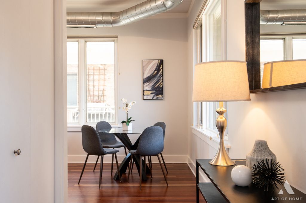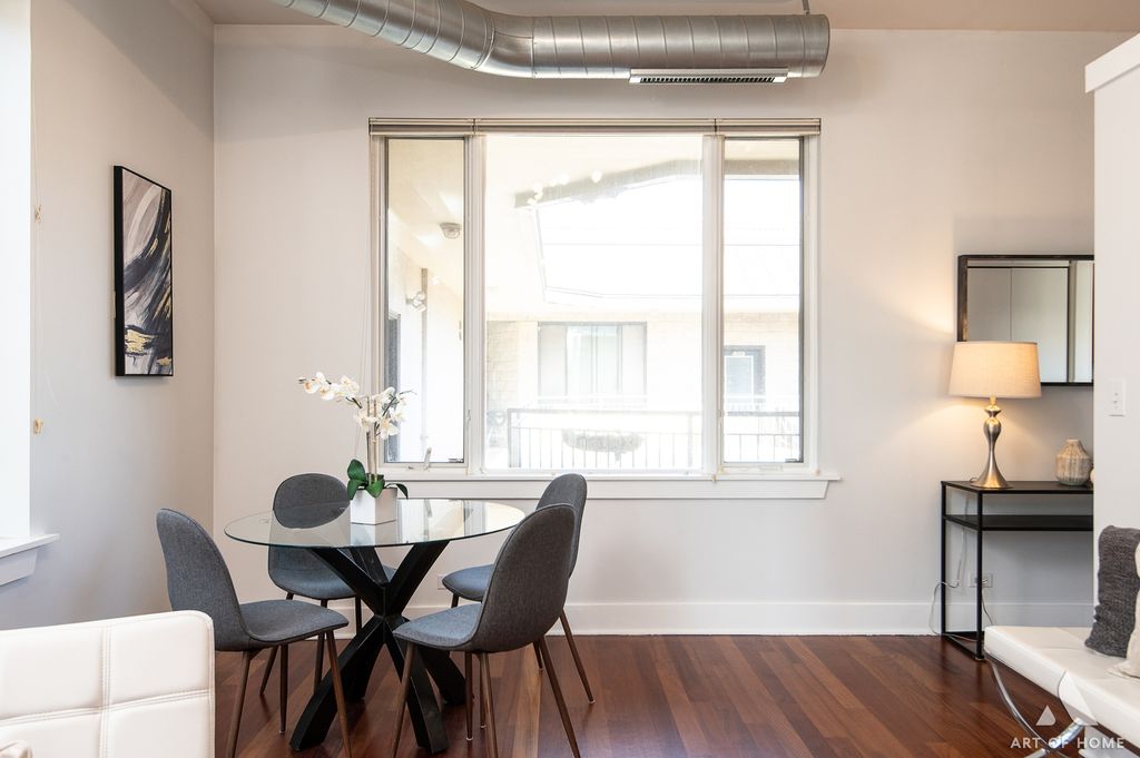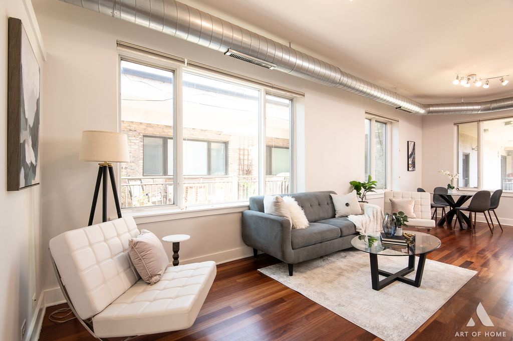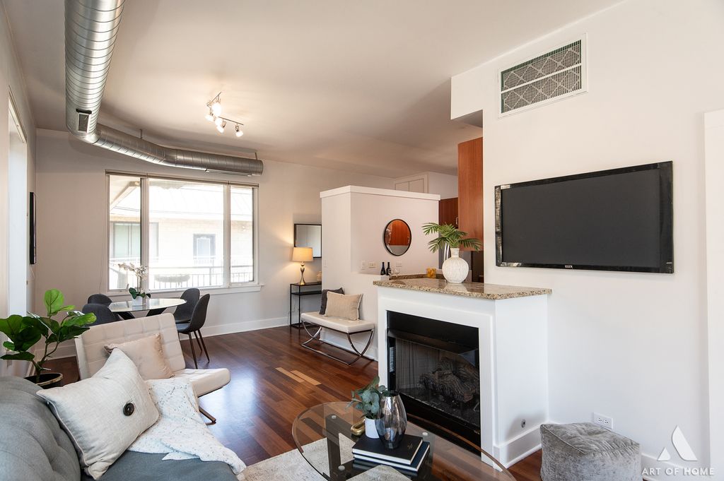 Experience quiet city living in this sun-drenched top-floor corner unit! This move-in ready rear-corner condo in an elevator building boasts 11-foot ceilings and extra windows on three sides, flooding the space with amazing natural light. An open, loft-like layout features rich hardwood floors, a cozy gas fireplace, and a gleaming chef's kitchen with 42 cherry cabinetry, granite countertops, stainless-steel appliances, and an island. The spacious primary suite includes a large bath with double vanity and whirlpool tub, and a large double closet. The second bedroom also makes a great sunny office. Features in-unit laundry and central heat and AC for year-round comfort (new furnace/AC in 2023). Beyond the unit, the building offers several amenities: an elevator for easy access, extra storage space, a lovely communal courtyard, and a huge rooftop sundeck - perfect for entertaining or relaxing with skyline views. Deeded heated garage parking is included, so you'll never worry about Chicago winters. All of this is set in a premier Lincoln Square location - just around the corner from Lincoln Square's shops, restaurants, and cafes, plus only a block to the Western Brown Line 'L' station and nearby bus stops. Stroll to parks, the Davis Theater, Old Town School of Folk Music, and the weekly farmer's market - the best of city living is at your doorstep, while your top-floor position offers a peaceful retreat above it all. Don't miss the chance to make 409 your own Lincoln Square oasis!