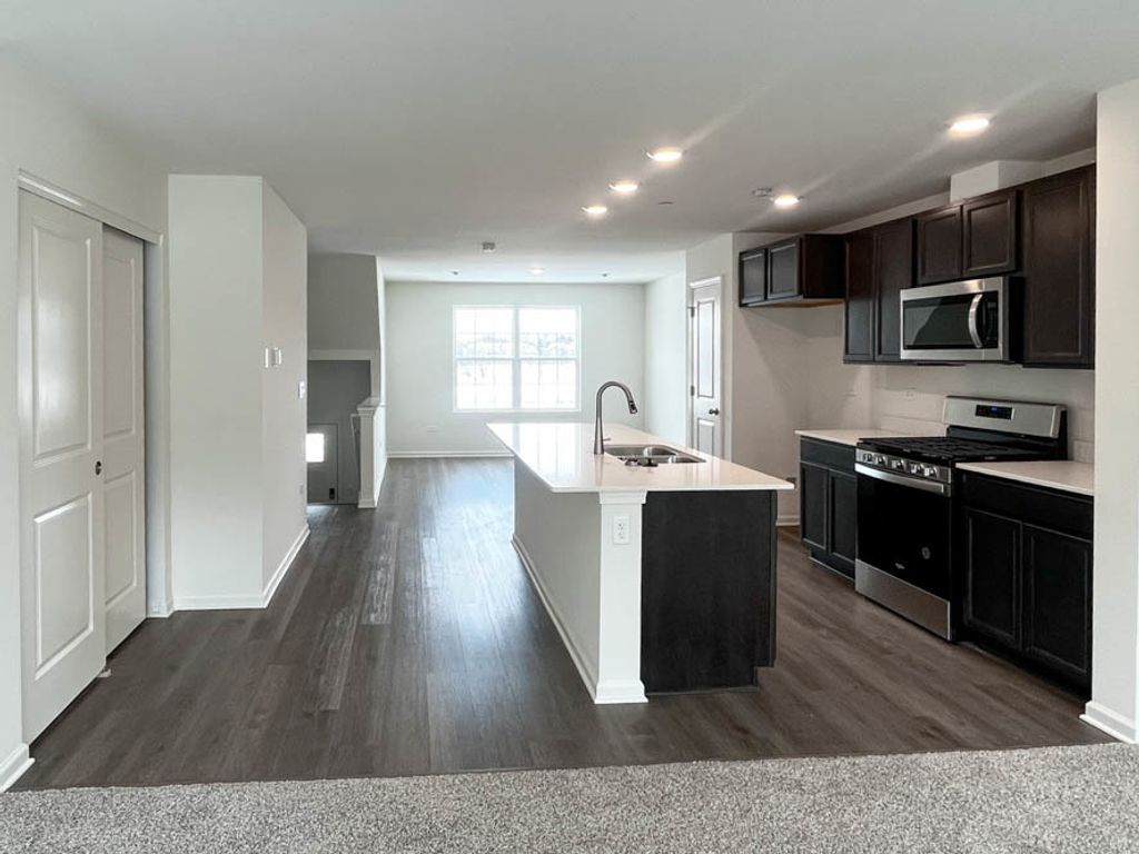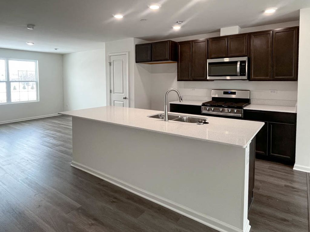 Discover yourself at 305 Foxglove Dr, a beautiful Townhome in The Grasslands community. This townhome is move-in ready NOW! Homesite includes a fully sodded yard that is maintained throughout the year, as well as snow removal. This Garfield townhome plan offers a well-designed spacious 1,756 square feet of living space with 3 bedrooms, 2.5 baths, and finished flex room. As soon as you step inside from your spacious two car garage entrance, you'll be greeted by the finished flex room, which is perfect as a den, 2nd living room or playroom. Walking up to the main level, you will find this home's open concept living space. The expansive designer kitchen overlooks both the front dining and back great room areas, making it the ideal space to entertain. Step outside onto your balcony, relax and enjoy your morning coffee. Additionally, your kitchen features designer cabinetry, a spacious island with QUARTZ countertops, and pantry. Enjoy your large primary bedroom with a walk-in closet and connecting en suite bathroom. The rest of the upper level features a laundry room, secondary bedrooms with a full second bath, and linen closet. You'll also find luxury vinyl plank flooring throughout the main level living space, bathrooms, and laundry. Impressive innovative ERV furnace system and tankless water heater round out the amazing features this home has to offer! All Chicago homes include our America's Smart-Home Technology, featuring a smart video doorbell, smart Honeywell thermostat, Amazon Echo Pop, smart door lock, Deako smart light switches and more. Photos are of similar homes and model home. Actual home built may vary.