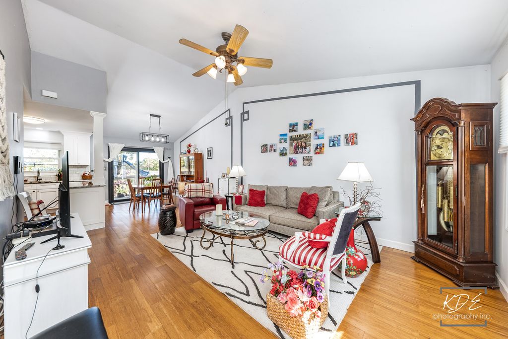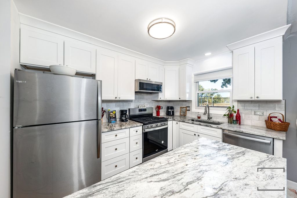 One look and you'll fall in love with this adorable updated ranch!!! This beautiful home is comfortably tucked into an eyelash cul-de-sac, sides to a greenbelt, and backs to an elementary school playground! Cute as a button curb appeal! Sheltered porch and welcoming foyer. The entrance opens up to a spacious family room with cathedral ceiling, ceiling fan with light, and laminate hardwood flooring. Updated kitchen is light & bright & drenched with sunlight!! Center island. White cabinetry with crown moulding, quartz countertops, and premium stainless steel appliances are all included! Dining room with cathedral ceiling, updated lighting, and sliding glass door to patio. Spacious master bedroom with pass-through to hall bath. Total of 3 bedrooms. Washer and dryer included. Two car garage with extra storage space. Perfect for first time home buyers, and move in ready! A MUST SEE!!! Ideal location for commuters. Close to restaurants & shopping! Better hurry - blink and this one will be gone - MAKE IT YOURS TODAY!!!