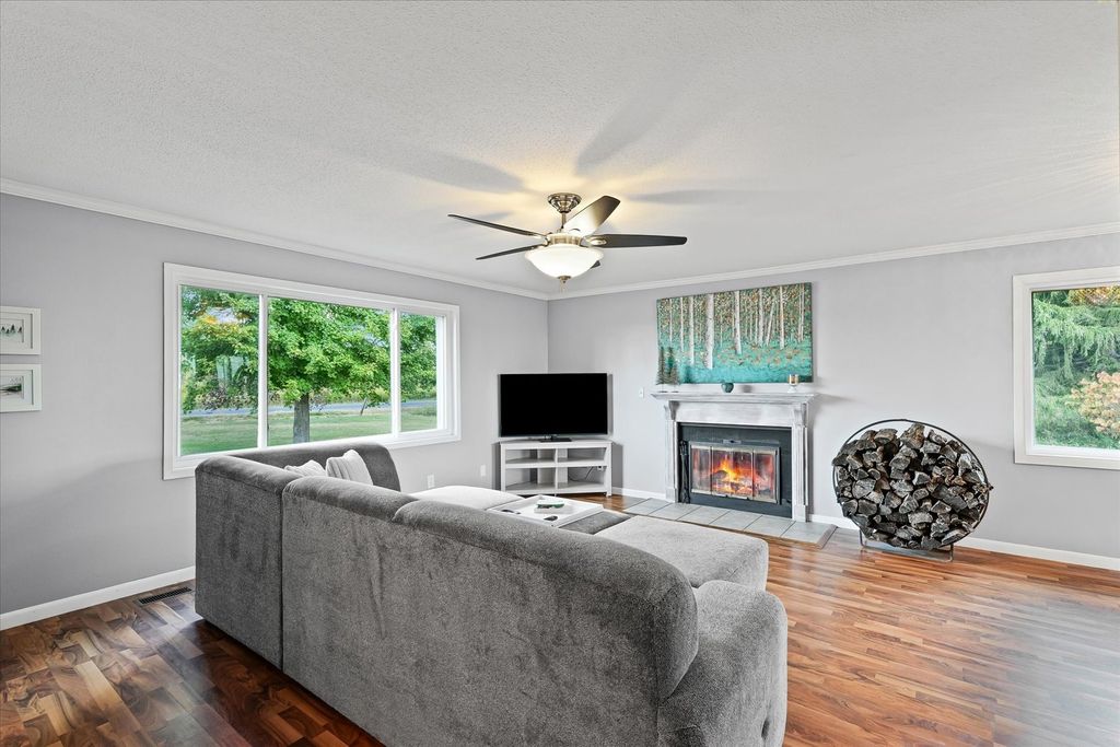 Nestled on nearly an acre with low taxes, this spacious 3-bedroom, 2-bath ranch offers an open floor plan, abundant natural light, and a long list of updates. Recent improvements include a high-efficiency heat pump system, siding, gutters, flooring, and kitchen upgrades with refreshed cabinetry, dishwasher, microwave, and range. Many Pella windows and two sliding doors were also replaced in 2013, adding to the home's energy efficiency and style. The inviting living room centers around a wood-burning fireplace, while the family room and primary suite both open to a large concrete patio overlooking the expansive yard. Located near Carle Clinic on Mattis, shopping, restaurants, and Curtis Road interstate access, this home combines convenience with comfort and space both inside and out.