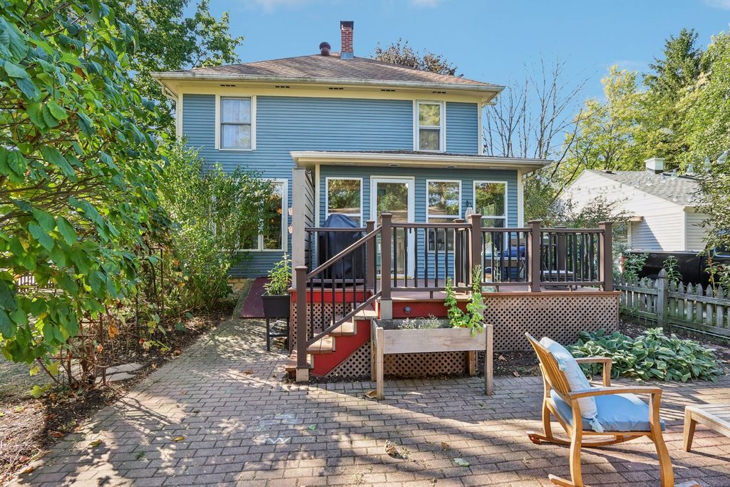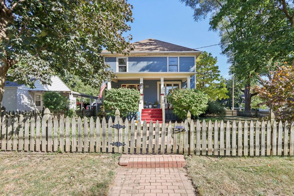 Classic 4-Square home filled with charm and modern updates! Nestled on a large corner lot with charming picket fence, brick walkway, and welcoming 19'x6' covered front porch, this Batavia gem offers timeless appeal inside and out. Once inside, a large foyer entrance with custom staircase makes a great first impression. The living room flows seamlessly into the spacious dining room, where hardwood floors, tall ceilings, and windows galore define the space. The kitchen, located just off the dining room, features abundant cabinetry, granite counters, and stainless steel appliances. A heated and air-conditioned den/sitting room is tucked just beyond the kitchen-perfect for today's lifestyle. A newly remodeled half bath completes the main level. Upstairs, the primary suite offers dual closets. The spa-like bath features granite floors, granite-surround shower/tub, dual sinks, crown molding, and makeup niche. Laundry is conveniently located upstairs off the primary bath. Additional bedrooms with ceiling fans complete the second level. The full dry basement provides excellent storage. Outdoor living includes a full-glass door to the deck, step-down brick paver patio, and a spacious fenced yard. The HUGE 24x24+ garage with additional 15x7 storage area is a rare find! A perfect blend of vintage charm and modern amenities-truly a must-see! Batavia Schools!
