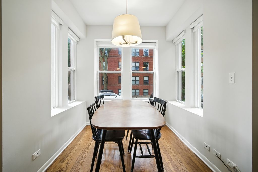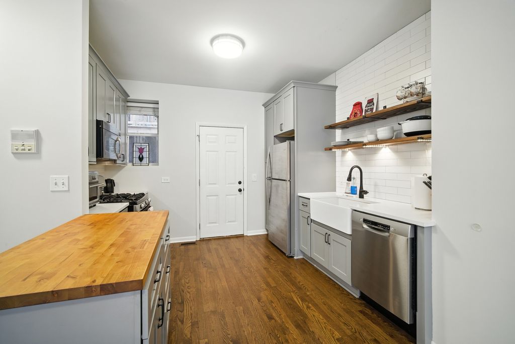 WATERS SCHOOL DISTRICT! Beautifully renovated 2-bedroom + sunroom, 2-bath duplex offering over 1,300 sq. ft. in the heart of Lincoln Square. Located on a charming tree-lined street in a classic all building. This bright home is filled with natural light. Enjoy the renovated kitchen featuring stone and butcher-block countertops, stainless steel appliances, subway tile backsplash, and a breakfast bar that opens to the living room-perfect for entertaining. The home includes 2-full bathrooms, newer hardwood floors throughout, in-unit washer/dryer, and private outdoor deck space. Extra-large private storage, easy street parking plus nearby rental parking available off the alley. All just steps to The Square, restaurants, cafes, neighborhood parks, and public transportation.