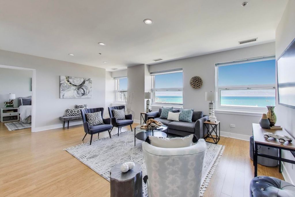 Forever views overlooking Buckingham Fountain, Grant Park & the Lakefront from every room! 6 picturesque windows capture the views of Grant park, and lake. Spacious entry with elegant gallery hall opens up to the living rooms and TV ares. Updated kitchen cabinets, tons of cabinets room, and counter space for prepping. Preferred split floor with generous primary bedroom, both bedrooms offer large windows with tons of natural light. Both bedrooms provide an en-suite bathroom and with a .5 in the common area. Large walk-in W.D room with an very new W.D 24 hour door staff, fitness center, and additional LARGE storage on the same floor. (6/3/3). 1 heated garage space available for $35k addl. (#14)