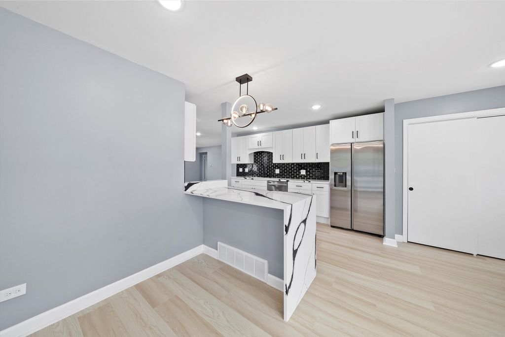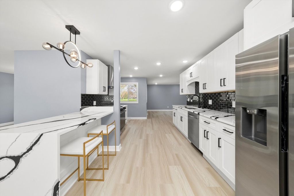 Looking to call a fresh modern rehabbed home yours? Welcome to this stunning new ranch style home in the fastest growing pocket of South Holland. This freshly rehabbed property (2025) has been brushed up to provide a fresh and vibrant living experience. This 3 Bedroom plus 1 BONUS room/ 3 Bathroom home boasts plenty of living space in its extremely spacious new layout with nearly 2100 square feet of property access. The home also sits on a large lot of nearly 7,250 square feet of land giving this home a sizable and privately fenced backyard. This home also features a completely remodeled kitchen with all brand new stainless steel appliances, gorgeous quartz countertops, glass tile black splash, and 36' soft close cabinets to provide ample pantry space. Completely brand new windows were placed throughout the home to allow the house to fill with tons of natural light as well. The lower level has been completely finished as well to keep a consistent yet distinguished feel throughout. There is Central A/C, and a private driveway leads to a refinished 2 car garage. All new floors and brand new plumbing and electrical throughout the house. The roof and mechanicals are within the last 6 years. Don't miss out on this fantastic opportunity to own your dream home in a beautiful community! Envision the possibilities and schedule your showing today!
