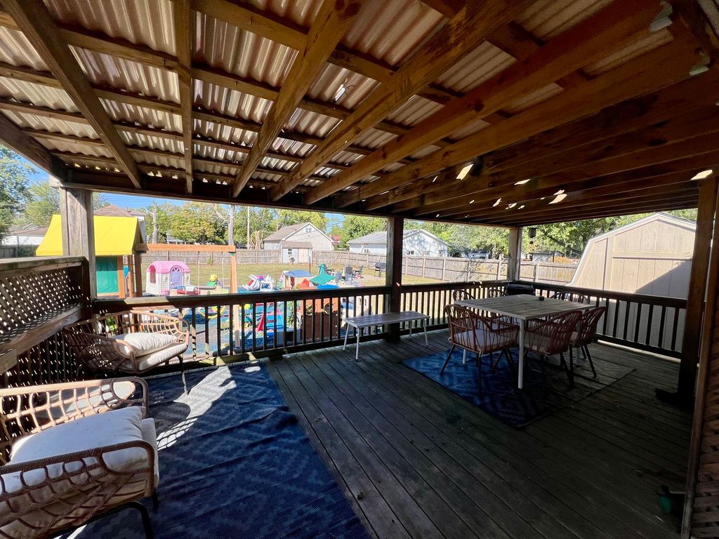 Welcome home to this charming 3-bedroom, 1.5-bath sprawling ranch, offering comfort, space, and plenty of character! You'll love the spacious living room highlighted by gorgeous natural light. Head into the family room to find plenty of space to relax, plus a convenient half bath. A large updated kitchen features fantastic cabinet and counter space. The formal dining room provides an ideal setting for family dinners or entertaining guests, while the bonus room offers endless possibilities for a home office, playroom, or cozy den. Retreat to your large master bedroom complete with a walk-in closet, perfect for all your storage needs. Outside, you'll enjoy a fully fenced yard-great for pets, gardening, or relaxing outdoors plus a huge covered deck for entertaining. Two storage sheds provide plenty of room for all your tools and toys. Take a look today!