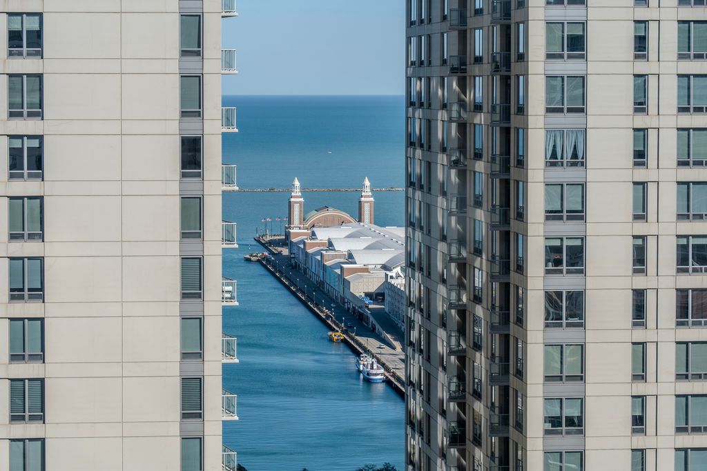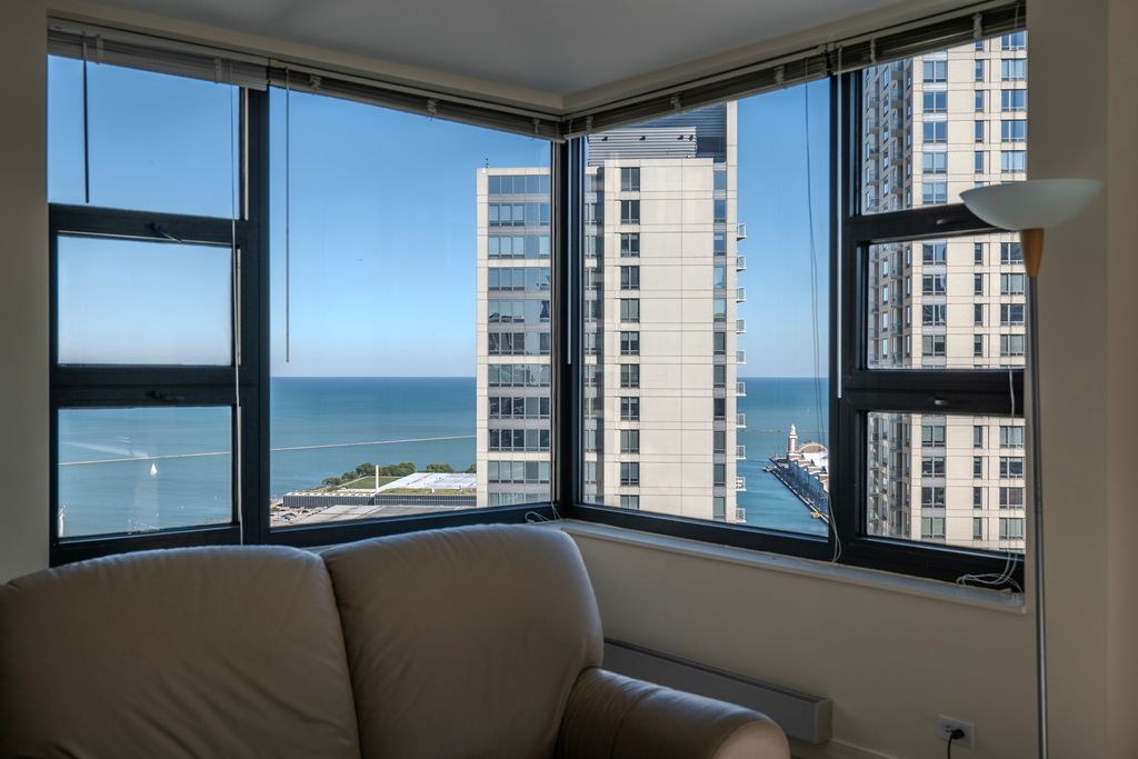Take in the breathtaking views from this 1850 sq. ft., sun-filled East Corner Unit. Enjoy stunning sunrises from this home, situated 40 stories high in the heart of Streeterville. Just one block from the lake and three blocks from Michigan Avenue, you're surrounded by endless activities and experiences. The open corner layout of the living room provides expansive lake and city views, creating a bright and welcoming space. The dining area flows seamlessly from the living room and connects to the kitchen, forming a spacious and inviting central hub. The kitchen is well-appointed with a brand-new stainless steel refrigerator. The third bedroom, located just off the main living area, is perfect as a home office, while the second bedroom is down the hall, featuring an organized closet and beautiful views. The second bathroom is conveniently located across the hall from the second bedroom. The master suite includes a generous walk-in closet, a spa-like bathroom with a large walk-in shower. This is truly the perfect home in the sky. The building offers top-notch amenities, including 5-star service, an event room, two outdoor patios, an indoor pool, a hot tub with views, a fully-equipped gym with a sauna, and a 24-hour doorman. Not to mention, all utilities are included except electric! This impeccably maintained building is located in a prime Streeterville area, with immediate access to grocery stores, shops, restaurants, coffee spots, bike paths, the beach, Lake Michigan, and more!