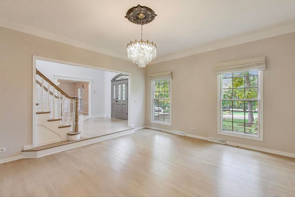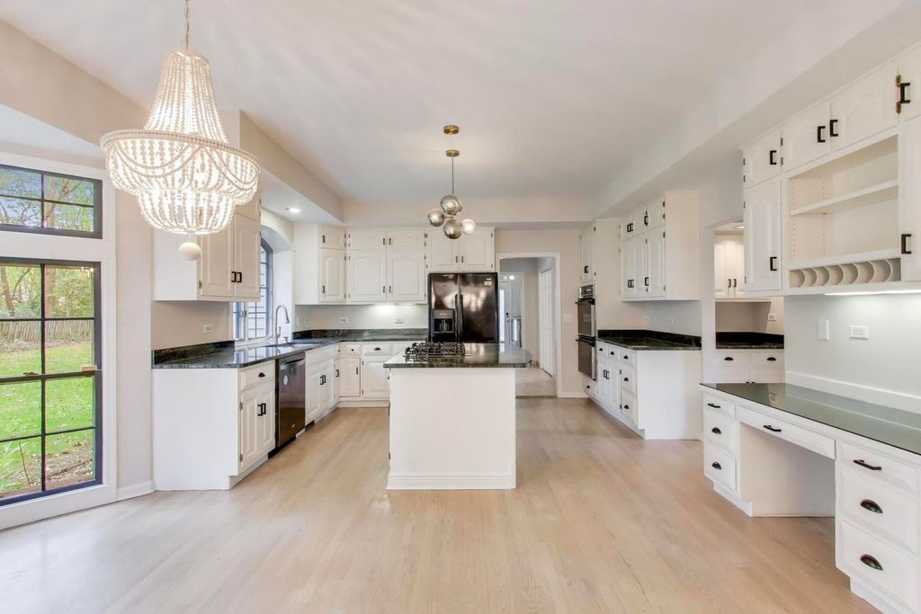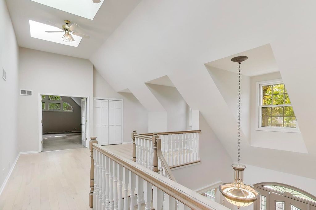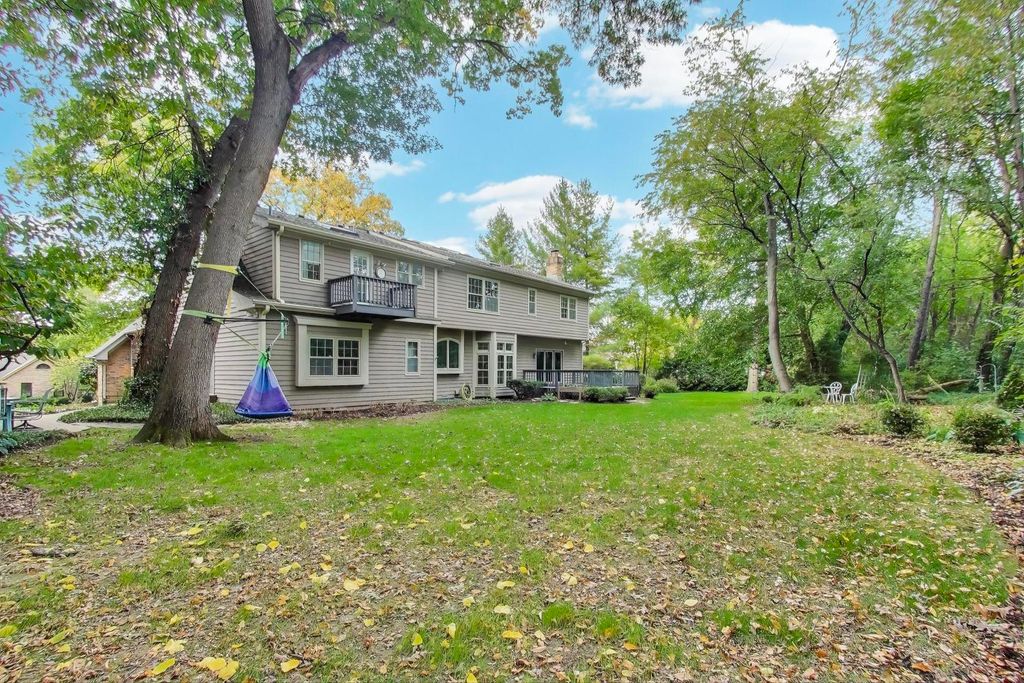 When purchasing a home, location is key. This hidden gem is tucked away in a beautiful, quiet neighborhood you'd never know was there. Situated on a wooded half-acre lot, the home offers over 4,400 sq ft of thoughtfully designed living space. A grand two-story foyer welcomes you in. Step down into the spacious living room, which opens to the family room-perfect for entertaining. The formal dining room features built-ins, a tray ceiling, and a convenient butler's pantry. The library is truly special, with a floor-to-ceiling wood-burning fireplace flanked by custom bookcases. Newer hardwood floors flow throughout the main level. The eat-in kitchen features granite counters, abundant cabinetry, and a built-in desk. Off the kitchen are a fifth bedroom, a full bath, and a large laundry/mudroom. Upstairs, you'll find four generous bedrooms, including one with an en-suite bath, plus a spacious loft. The vaulted primary suite offers custom closets and a brand-new luxury bath (Oct 2025) with a double vanity, soaking tub, walk-in shower, and elegant lighting. The unfinished 1,850-sq-ft basement provides endless possibilities. Outside, enjoy a large deck overlooking a serene yard filled with mature trees and perennials. A three-car side-load garage completes this beautiful property. Within walking distance is Reed-Kepler Park, which includes a turtle splash water park, recreation/workout center, two dog parks, a skate park, baseball fields, and an event center. Also nearby are the Metra train station, public schools, and Wheaton Academy. Perfect location-and priced to sell quickly. Hit the Virtual Tour link for a 3D walk thru & floorplans.