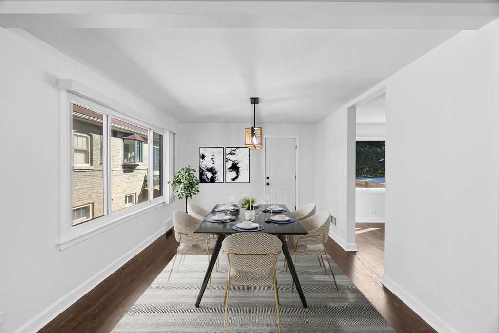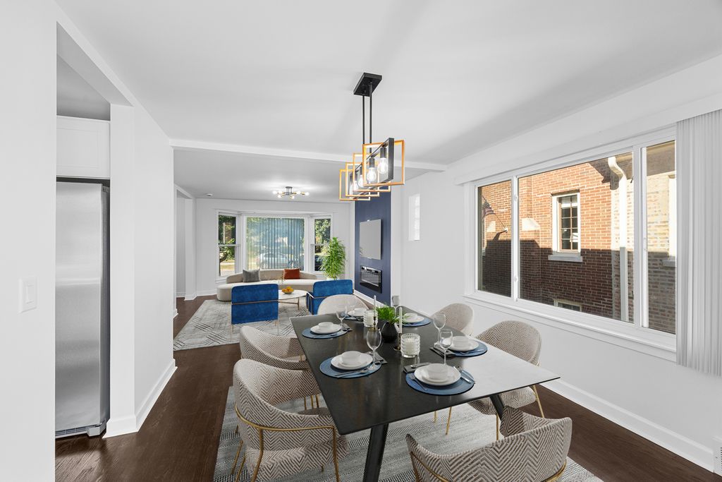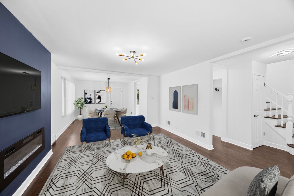 This charming 3-bedroom, 2-bath home combines modern style with classic comfort, featuring spacious living and dining areas with gleaming wood floors, a stylish accent wall with an electric fireplace, and a brand-new kitchen with two-tone shaker cabinets, quartz countertops, stainless steel appliances, and a sleek backsplash. The finished basement offers a versatile space for gatherings or a family room, while new mechanicals and a new garage roof provide peace of mind. Outside, enjoy a fenced backyard and a 2-car detached garage. Stylish, inviting, and move-in ready-this is the home where memories are made!