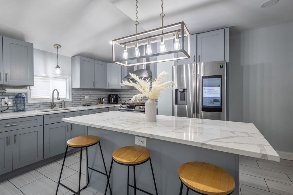 SPACIOUS HOME WITH LOTS OF UPDATED FEATURES. 1ST FLOOR: OPEN FLOOR PLAN, VINYL WOOD LIKE FLOORING, DINING ROOM WITH RECESS LIGHTING, LOTS OF GREAT LIGHTING THROUGH OUT THE HOUSE. TOP OF THE LINE LG STACKABLE GREY BIG LOAD WASHER/DRYER CLOSE TO LIVING ROOM ON THE FIRST FLOOR. YOU CAN WATCH TV WHILE ALSO PUTTING SOME LOADS. 2 BEDROOMS ON THE MAIN FLOOR .UNIQUE WHITE QUARTZ SHOWER NEWER MODERN BATHROOM. UPDATED KITCHEN WITH QUARTZ COUNTER TOP COUNTERS, LOTS OF CABINETS, QUARTZ COUNTER TOP ISLAND WITH SMALL WINE COOLER REFRIGERATOR PLUS MORE CABINETS. WHITE CERAMIC TILE FLOORING. STAINLESS STEEL OVEN RANGE WITH WALL MOUNT RANGE HOOD. BEAUTIFUL LIGHTING PIECE ABOVE ISLAND. KITCHEN BACK DOOR LEADING TO A GOOD SIZE DECK FOR SUMMER ENJOYMENT. 2ND FLOOR: HUGE MASTER BEDROOM WITH GOOD SIZE CLOSET , FULL BATHROOM. AND THE SMALL LOFT COULD BE TURNED INTO MORE CLOSET SPACE BY THE WALL. BASEMENT: PERFECT FOR MOM & DAD FEELING AT HOME WITH THEIR OWN PRIVACY. GREAT FAMILY ROOM, 2 BEDROOMS, ADORABLE BATHROOM & A PERFECT KITCHEN WITH LOTS OF CABINETS NEWER BLACK REFRIGERATOR/STOVE. ALL GREY VINYL TILE FLOORING THROUGH OUT. GOOD SIZE YARD READY FOR LOTS OF BEAUTIFUL FLOWERS AND BUSHES TO GIVE IT A FINAL TOUCH. 2 CAR BRICK GARAGE. SPECIAL IRON FENCED GATES. GOOD TRANSPORTATION ON CALIFORNIA AVE . NEEDS SOME TLC HERE & THERE . BUT LOTS TO OFFER . MUST SEE TO APPRECIATE WHAT HAS BEEN DONE. $4,000.00 FOR CLOSING COSTS, PROPERTY TO BE SOLD AS/IS.