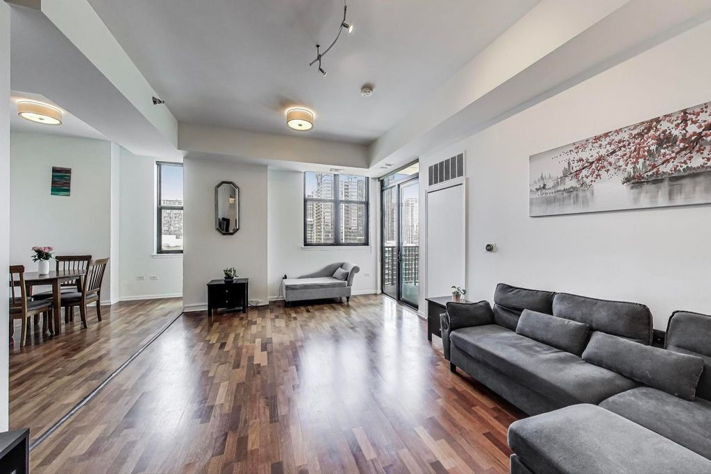 Embrace a lifestyle of luxurious comfort and vibrant entertaining in a prime location, just moments from the lake, outstanding dining, renowned museums, and beautiful parks that the South Loop offers. This remarkable huge unit showcases an open floor plan with soaring 11-foot ceilings and expansive windows that invite abundant natural light. Soak in breathtaking vistas of the lake, Soldier Field, and the vibrant city skyline. With 1,400 square feet, this spacious 2-bedroom plus DEN /or formal DR condo features generous living space perfect for creating cherished memories. Enjoy the convenience of two full bathrooms and two separate balconies-one off the living room for gatherings and a private retreat off the primary suite for personal moments of peace. Elegance abounds with hardwood flooring throughout, granite countertops in the kitchen, and stainless steel appliances, inspiring culinary creativity. The luxurious ensuite bath includes a separate tub and walk-in shower, paired with a large walk-in closet that inspires organization and tranquility. Pet-friendly building, 24-hour doorperson and a fully equipped exercise room. Garage parking is available for 25K Originally 3B/2B unit converted to open and spacious 2B plus Den or formal D/R. Step into this incredible space and unlock the potential for your dream life!