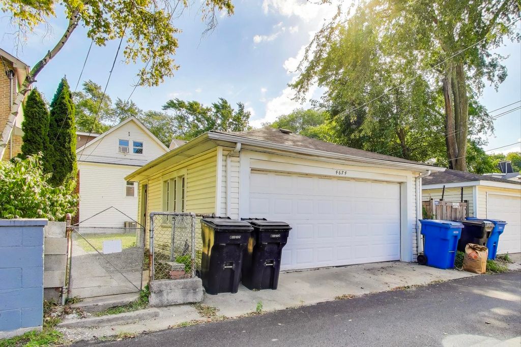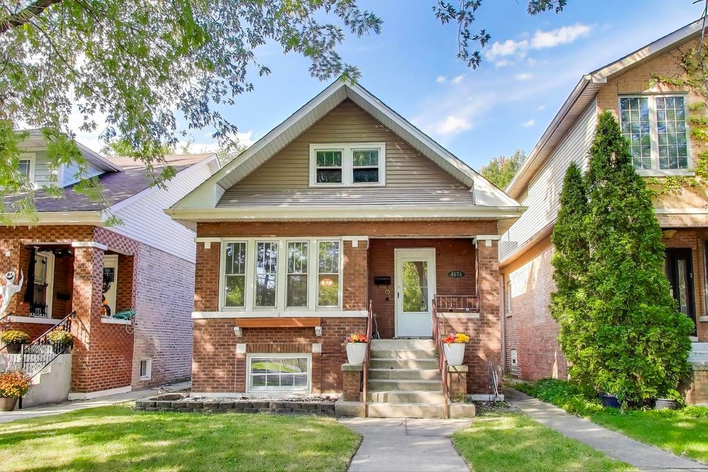 Portage Park brick bungalow with updated kitchen & primary bath plus tons of potential! Two HVAC systems for comfort year-round. Kitchen updated with quartz countertops, Maytag stainless steel appliances and painted cabinets. The main floor features hardwood floors, separate living & dining rooms, two bedrooms, one full bath and a rear porch. Upstairs features a 3rd bedroom, a new primary bathroom with heated tile floors, large tile shower, vanity and heated exhaust fan. Large attic space is ready for completion to make a primary bedroom. Unfinished basement with exterior access, Maytag washer/dryer, gas hot water heater and furnace. Detached 2 car garage. Close to Jefferson Park train station and 90/94. Beaubien Elementary School. Estate sale sold AS IS.