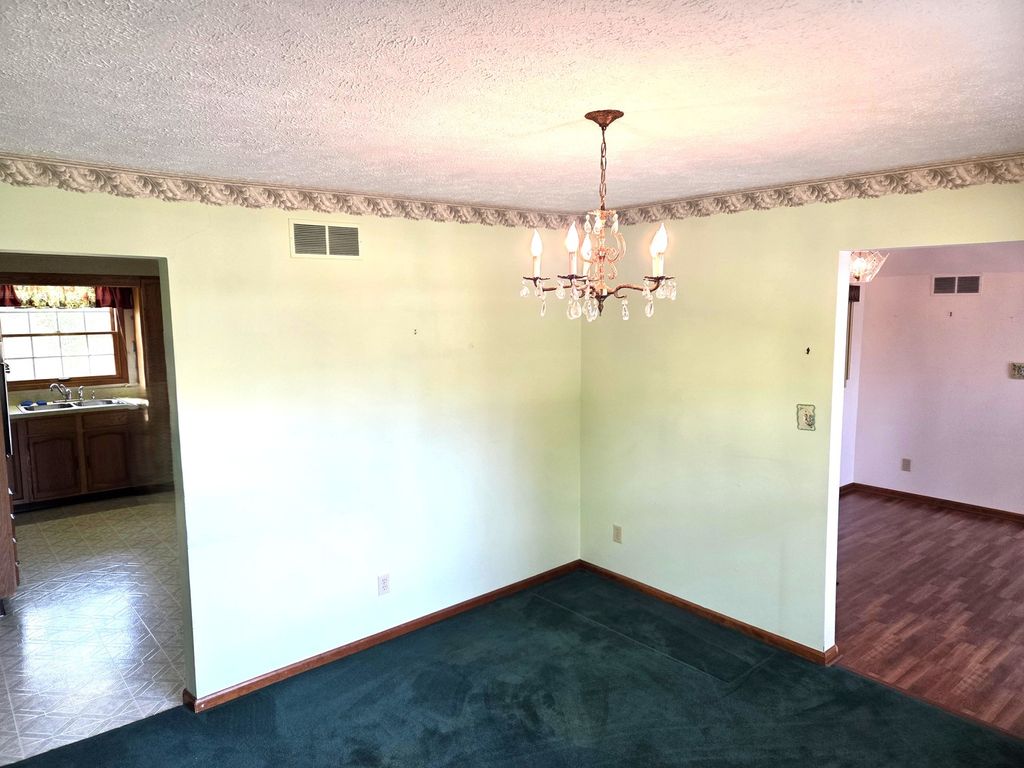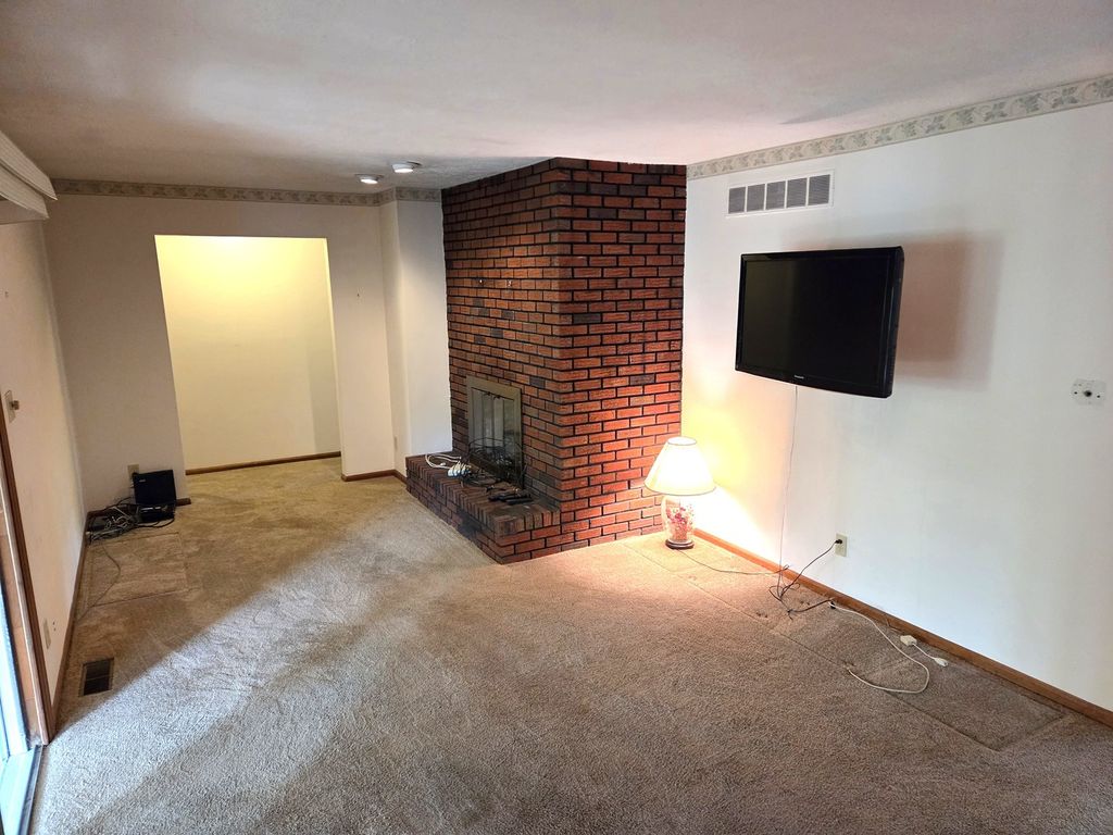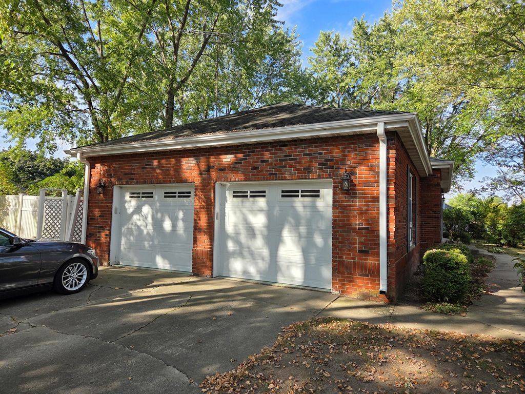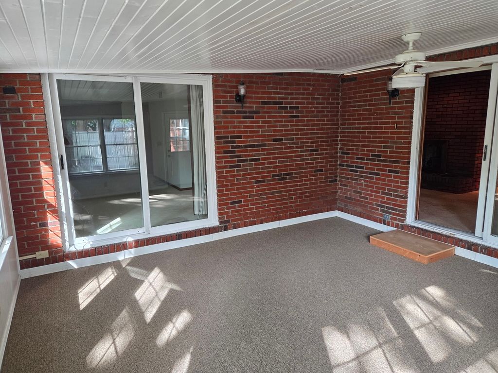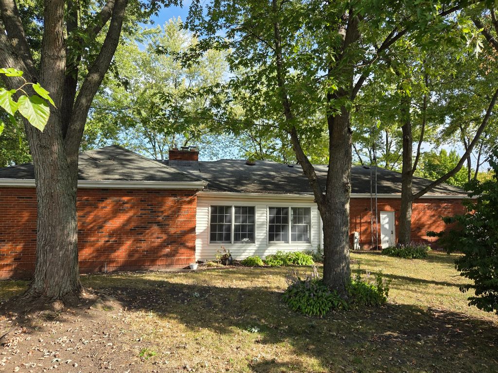 This three-bedroom brick ranch home is located in Hatcher Woods subdivision. It features two fireplaces with a see-through design situated in the living room, family room, and basement. There is a separate dining room adjacent to the eat-in kitchen, and carpeting is installed throughout the main floor bedrooms and living areas. The kitchen boasts custom cabinets, an electric cooktop, and a built-in oven. Additionally, the two-car garage has a wheelchair-accessible ramp leading to the interior door off the kitchen. A chair lift is installed to assist with stairs leading down to the spacious, partially finished basement, where the laundry is located. The home also includes a three-season room that connects to both the family room and the master bedroom. The fenced-in backyard is surrounded by landscaping and large shade trees, enhancing the property's appeal.