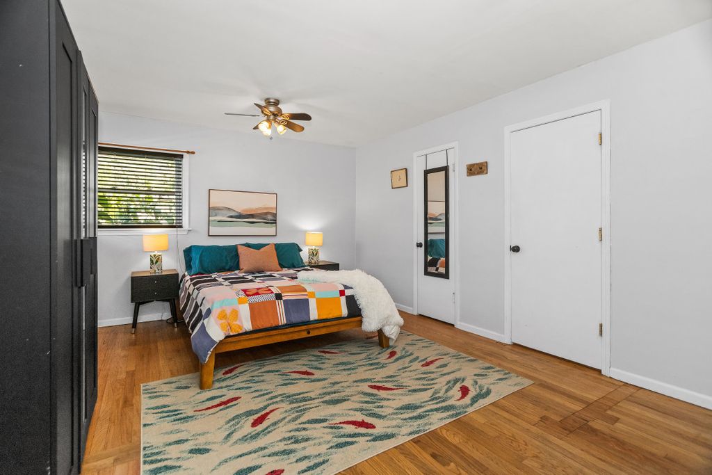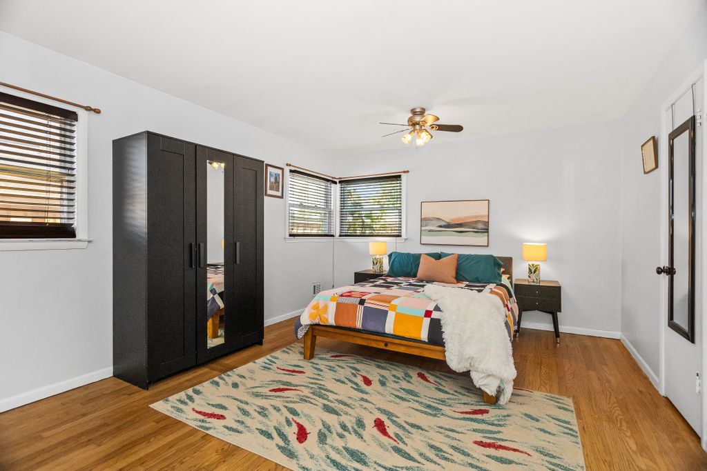 Charming 2-bedroom, 1 bath ranch home on private street in SW Evanston. This sunny house features a living room with a large picture window and room for two seating areas. Updated eat-in kitchen with abundant wood-cabinets, granite countertops and tile backsplash. The oversized primary bedroom can comfortably fit a king-sized bed-and then some. Spacious second bedroom could also be used as a home office. Full bathroom with vanity, soaking tub/shower and tile floor and tub surround. Ample closet space & hardwood floors throughout! Large attic with bessler stairs-perfect for storage. Separate laundry/utility room. The magical, private backyard has a paver patio, fire pit and separate dog run. Brand new cedar privacy fence wrap-around this organically maintained yard. It is a pollinator's paradise, with mature cup plants, goldenrod, and trumpet vine that attract bumblebees, hummingbirds, and butterflies, alongside a variety of well-maintained perennials. The property also includes multiple fruit trees and a currant bush. Newer, oversized 2 1/2 car garage. Wonderful location: steps from the brand new The AUX commercial hub and Oakton & Main Street shopping malls, in-between two lovely parks: James and Harbert Payne. Easy access to the expressway and Chicago, Northwestern University and Lake Michigan!
