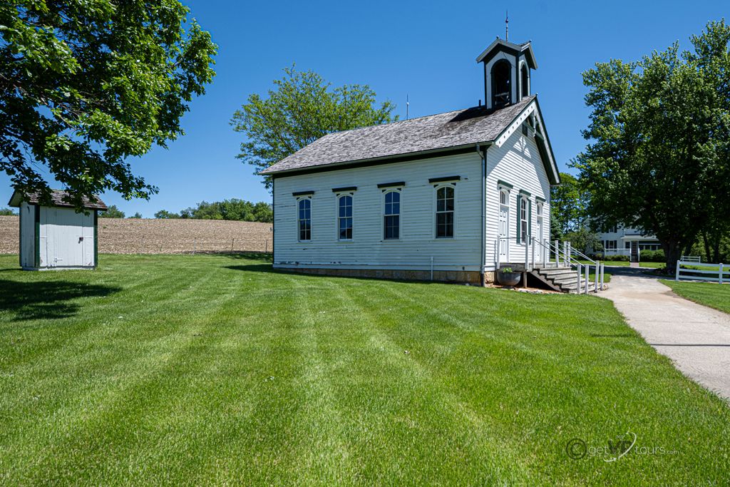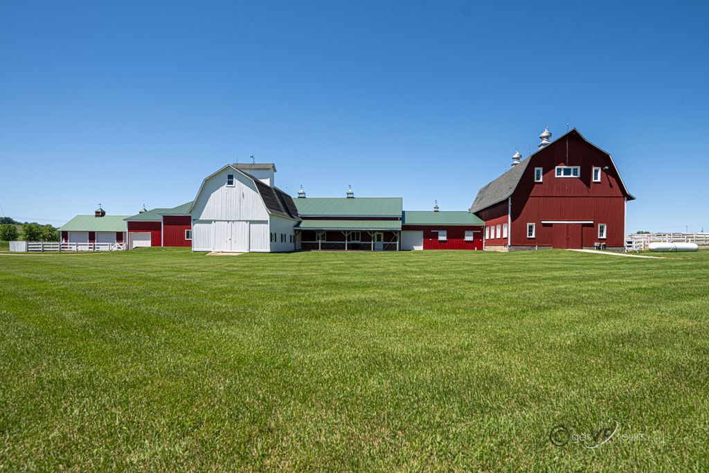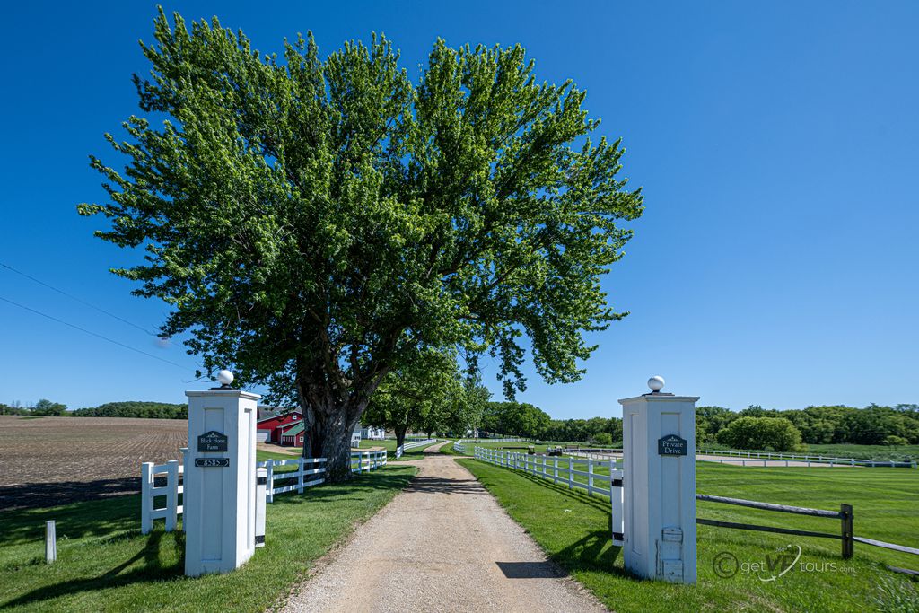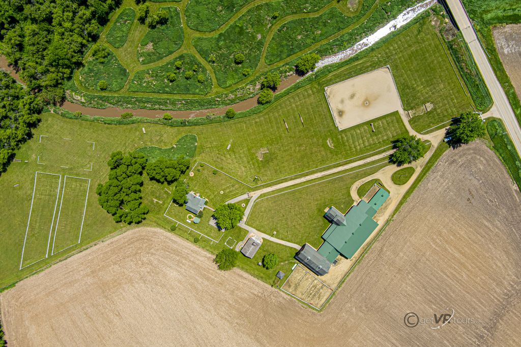 Very Motivated Seller, make an offer on this special property. Equestrian property on acreage for Sale, Elizabeth, IL 61028. Come check out this beautifully designed horse property compound located at 8585 S. Derinda Road, Elizabeth, IL 61028. Property sits in the rolling hills of Derinda valley and heart of the Massbach Hounds 'Foxhunting Club territory, with the meandering Rush River which flows through. Black Horse Farm is a premiere equestrian property in Jo Daviess County, IL. Attention to detail to the infrastructure is evident throughout this well-manicured and maintained equine paradise. Toset the scene, you will be arriving to the main gate of the property, that leads down a long white fenced lane. Off to the right is the outdoor arena area approximately 150' x 100', along with several horse jumping course that begins at the outdoor arena to the paddocks and behind the historic 2-story farm home. Off to the right of the lane is the impressive multi-building structures showcasing a well-groomed 6800 square foot indoor riding arena, (7) stables, of four that have ceiling fans and heaters, equipment storage for all the equipment needed to keep this meticulous equine property in pristine condition. Moving along from the arena area to the original part of the barn, there's the thoughtfully laid out tack room that offers 4 lockers with saddle hangers, full bathroom, laundry, semi-kitchenette with desk, sink, microwave and refrigerator. Oh, but wait-there's more: a trophy room is off the tack room to showcase your trophies, awards ,and other special moments that makes your equine journey so special. A workspace area is additional storage of feeding, watering supplies and general supplies that are needed to keep this beauty in tip top shape! A half bathroom is located on the main level of the loft barn. Heading upstairs is an open floor plan that could be used for gathering, special occasions/parties. Currently a portion is used by the seller as a workout home gym. A home office "command station" overlooks the entire compound. What a view to work from home! There is a personal sauna in the office space. The four bedrooms, 2.5 bath 1900's farmhouse has been preserved to keep its country style. Entering the front porch to the interior of the home, there are original hardwood floors are throughout the main level. Walk into the spacious dining room area, off to the left is the living room and master bedroom with private full bath. Kitchen is off the rear of the house, which also offers main level laundry, making this rustic beaut main level living. Upstairs are three more guest bedrooms, with a full bathroom servicing them. A storage room is off the upper bath. Off the kitchen is a screen in porch great for sitting and relaxing and taking in the beauty. This property just keeps on impressing, with the original Derinda Center Town Hall which was also a schoolhouse in the day. School house is set up as a guest suite/quarters that offers a full bathroom, bedroom area and a large open area. VERY UNIQUE to say the least, you really need to see this one in person to truly appreciate what the seller has built. Home and office furnishings are included in sale price. The tractor, mowers, UTA and other farming equipment is available for purchase. Square footages are approximates and aerial is estimated boundary lines and NOT a survey. Home finished square footage:1956 and schoolhouse guest suite is 936 sq ft. check out the drone video of property is available, listing agent will email to you upon request.
