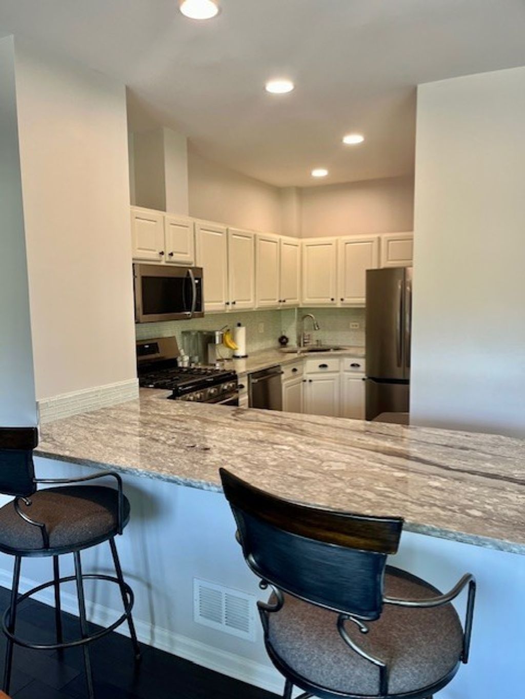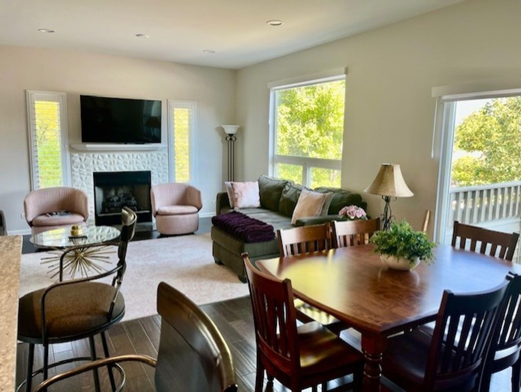 Welcome to 479 River Bend Road, Unit 111-a beautifully updated three-level condo in the heart of Naperville's River Bend community. This spacious 2-bedroom, 2.5-bath home offers 1,755 square feet of light-filled living space with vaulted ceilings, a gas fireplace, and picturesque views of Moser Tower and Millennium Carillon from both the living room and bedrooms. Recent updates throughout (2024) include fresh paint, new carpeting, updated adjustable, dimming lighting, stairwell sconces and handrails. The kitchen features Frigidaire Gallery stainless steel appliances and a Bosch dishwasher, while the master suite boasts canned lighting, a ceiling fan, new vanity with soft-close cabinetry, ceramic tile flooring, and an oversized closet. All bathrooms have been remodeled, and the second-floor laundry includes an LG stackable washer and True Steam dryer. Additional upgrades include electric shades, plantation shutters, a newer furnace (2020) and water heater. Located in a quiet, pet-friendly, 18-unit HOA community, this home offers a 2nd floor outdoor balcony with a view of the Millenium Carillon and private, concrete ground-level patio for grilling or enjoying your evening, a 2-car attached garage, central air and an asphalt driveway. Monthly HOA dues cover lawn care, snow removal, exterior maintenance, scavenger services and common insurance. The property is within Naperville School District 203-Elmwood Elementary, Lincoln Junior High and Naperville Central High School-with two school bus routes serving the community. Enjoy walkability to the Riverwalk, Naper Settlement, Meson Sabika, downtown shops, restaurants, festivals and parades. With no Special Service Area Assessment and a Homestead exemption in place, this turnkey home offers unmatched convenience, charm and especially location! Don't miss this rare opportunity to live in one of Naperville's most desirable neighborhoods.