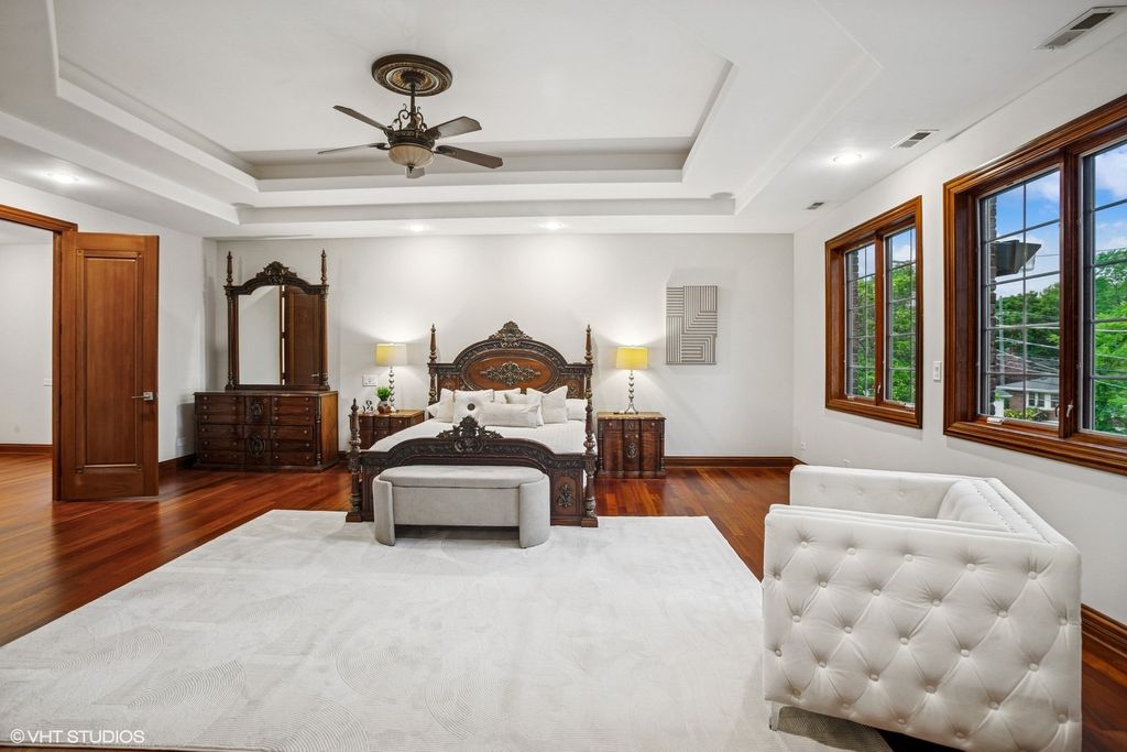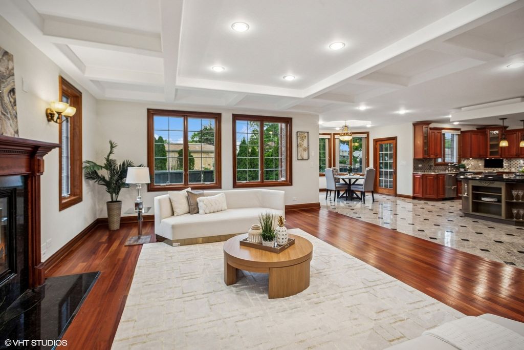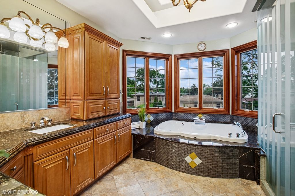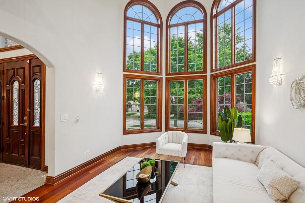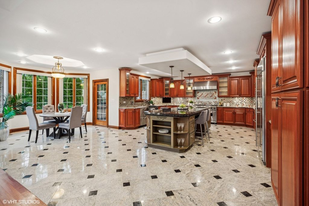 Welcome to 3832 W Chase Ave, a one-of-a-kind, custom-built brick and stone masterpiece situated on a rare double lot in the heart of Lincolnwood. This luxury residence offers 6 bedrooms, 5.1 bathrooms, more than 7,500 Sq. Ft. of living space with over-the-top craftsmanship throughout-perfect for those who appreciate quality, space, thoughtful design, and timeless elegance. From the moment you enter, you'll notice the Swarovski Crystal light fixtures, solid 2x6 construction, imported solid-core doors, bullnose corners, rich wood trim, Pelle windows, and the list goes on. Step into a grandeur 2-story foyer with tray ceiling dining room on the right side and a 2-story formal living providing unmatched sunlight on the left. Gleaming Mahogany hardwood floors flow throughout the home, adding warmth and sophistication, complemented with tiles providing convenience in cleaning. The family room boasts coffered ceilings with a gas fireplace, an open concept leading to a breakfast area and a chef's dream kitchen. Explore your culinary talents in the primary kitchen which includes all stainless steel appliances; 6-burner and grill Viking stove with double oven, 2 Fisher and Paykel dishwashers, double door fridge, additional wall oven, warming drawer and commercial grade exhaust. 42' custom wood cabinets with pullouts, organizers, molding, and trim finishes. Thick multi-beveled, 2-tone, granite countertops complemented with a backsplash. TWO ADDITIONAL kitchens provide flexibility for entertaining, extended family, or cultural cooking needs. The main level also offers a generously sized bedroom, ensuite bathroom, and built-out walk-in closet-ideal for guests or multigenerational living. The 2nd floor includes 4 bedrooms, 2 of them having access to a jack and jill bathroom and the other 2 having ensuites. All bathrooms include full-body tile showers, and each bedroom comes a fully built-out closet with drawers, storage compartments, and hanging space. The primary bedroom is a private sanctuary including a gas fireplace, additional room with a balcony looking over the living room, his and her closets with full build-outs and a safe, ensuite bathroom showcasing dual vanity with granite countertops, jacuzzi tub and full body standing steam shower. Convenient 2nd-floor laundry with wash basin and additional storage cabinets, and organizing counter space. Step into a fully finished lookout basement that offers a private retreat, a guest suite, or a vibrant entertainment zone, this basement delivers both luxury and functionality. The basement includes radiant heated floors with a bedroom, full bathroom, stone fireplace, large flex space, and full kitchen that has never been touched! The basement offers 2 exits - one to the backyard and one to the garage - ideal for private living or ease of accessibility. Do not worry about starting your car on those cold winter mornings with an extra deep 2-car garage, radiant heated floors, and tall ceilings ideal for hanging storage. Stunning fenced backyard including tall evergreen trees providing yearlong privacy, elevated garden beds, hardscape, and stamped concrete patio. Prime location steps away from a park, and minutes away from Lincolnwood Town Center, I-94, Bryn Mawr Country Club, and so much more. Top-rated schools including Todd Hall, Rutledge Hall, Lincoln Hall Middle School, and Niles West High School This home is a rare opportunity to own a truly custom, high-end residence in one of Lincolnwood's most sought-after neighborhoods. Schedule your private tour today to experience the craftsmanship and luxury firsthand.