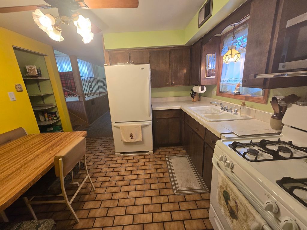 Proudly maintained by the original owners, California-style kitchen, split-level home offers 3 bedrooms and 1 beautifully remodeled bathroom featuring a modern walk-in shower. Enjoy a private fenced backyard-perfect for relaxing, entertaining, or letting pets roam free. The oversized 2.5-car garage provides ample space for vehicles, storage, or a workshop. This home includes newer windows, updated A/C and furnace. Affordable and full of potential, estate sale being sold as-is. A fantastic opportunity to own a well-cared-for home in a quiet, established neighborhood.