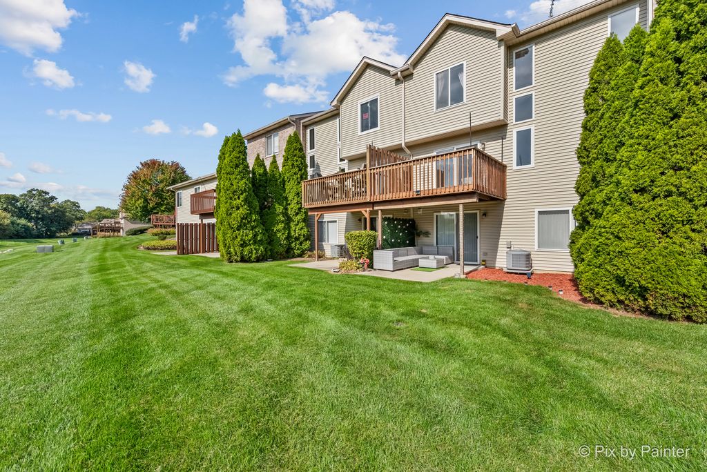 Townhome with a view! Featuring 2 bedrooms, 3.5 baths, a spacious loft, finished walkout basement, and an attached 2-car garage-all backing up to a serene nature preserve! Soaring windows fill the 2-story living room with natural light, highlighting the cozy gas fireplace, dining area, and beautifully updated kitchen. The finished walkout basement with full bath and sliders to the backyard adds incredible living space with peaceful nature views. The master suite offers a large walk-in closet, while the loft makes an ideal office, playroom, or flex space. Recent updates within the last 5 years include: fresh paint, new carpet, vinyl flooring in laundry, washer, roof, stainless steel appliances, sump pump, gas fireplace, furnace, central air, water softener, reverse osmosis system, plus extensive basement upgrades (drywall, paint, recessed lighting, LED track lighting, and engineered wood flooring). Close to shopping, dining, and the Fox River-this one is a MUST SEE and won't last long!