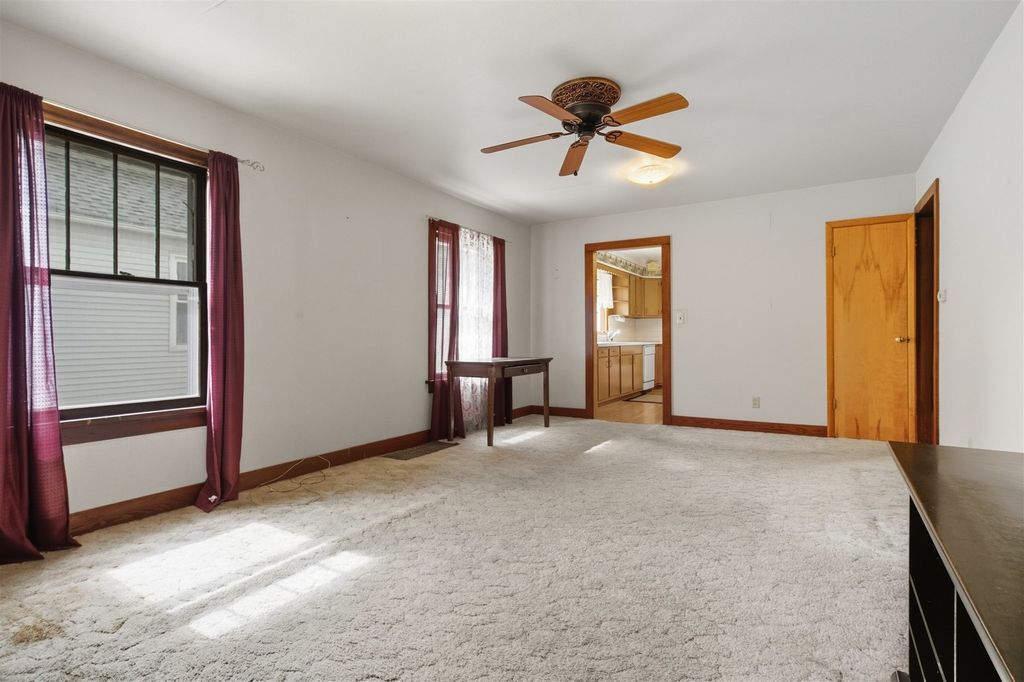 This cozy bungalow home features 2 bedrooms and 2 full bathrooms, making it perfect for comfortable living. When you step inside, you will find an enclosed front porch that's ideal for savoring morning coffee or for tranquil evenings. The home also features an inviting layout, with an eat-in kitchen that includes a restaurant booth, perfect for enjoying home-cooked meals. The unfinished basement offers ample potential for creating a home office, a recreation area, and a laundry room. When outside, you can enjoy a nice-sized fenced-in yard for gardening, play, or entertaining, along with a detached garage for parking or extra storage. This home is conveniently located near Miller Park, where you can enjoy the zoo, an 11-acre lake perfect for paddleboats and fishing, a playground with a splash pad, miniature golf, sand volleyball courts, an outdoor theater, and historical war memorials. It also features a popular bandstand for events, hosts a July 4th fireworks display over the lake, and has a pavilion available for rentals. Whether you're a first-time buyer or looking to downsize, this charming home could be the one.