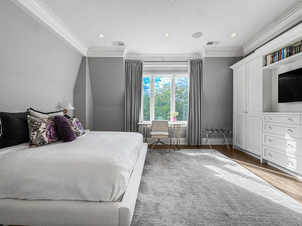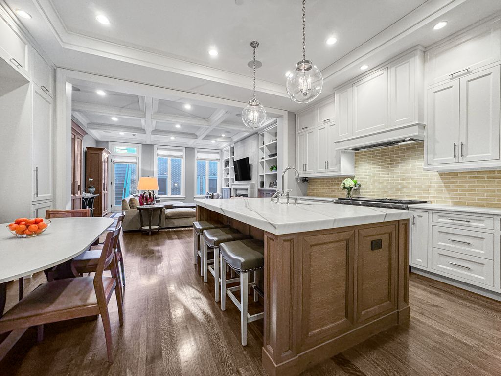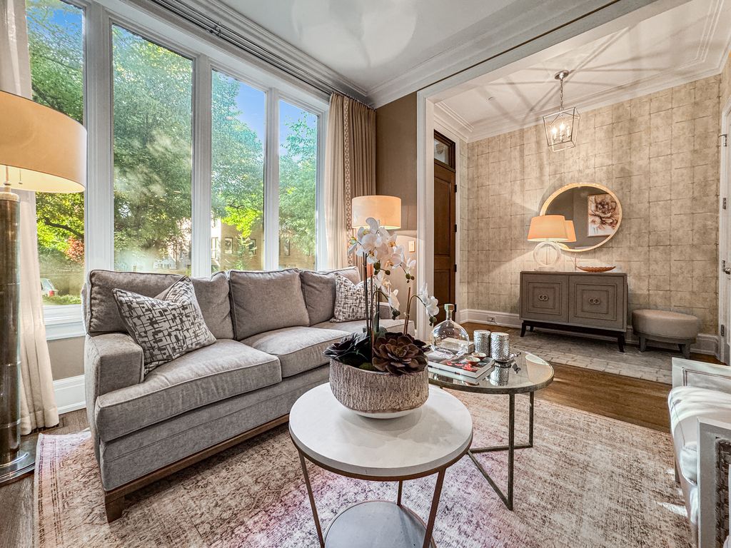 This exceptional 6,200+ square-foot, six-bedroom home on coveted Burling Street offers the best of city living. Behind its classic limestone facade lies sophisticated, high-end finishes, a four-stop passenger elevator, incredible outdoor space, and a heated, attached 2+-car garage. The main level is designed for entertaining, featuring 4" rift-sawn oak floors, elegant crown molding, two fireplaces, custom window treatments (including motorized shades), and built-in speakers. The kitchen and butler's pantry are outfitted with premium Sub-Zero, Wolf, and Bosch appliances, a large island with breakfast bar seating, and a built-in banquette. The adjoining family room includes a coffered ceiling and a fireplace flanked by custom cabinetry, seamlessly blending with the kitchen's design. Each of the six bedrooms includes its own full bath, complemented by two additional powder rooms for guests. Bath fixtures include top-tier brands such as Kallista. The luxurious primary suite features a spacious bedroom with a custom entertainment center, dual walk-in closets, and a spa-inspired bath with dual vanities, a steam shower, and a freestanding tub. Additional highlights include professionally organized closets throughout, two laundry centers, a mudroom, a three-zone HVAC system, radiant heat in the home, garage, and front steps, plus a Generac generator for added peace of mind. Ideally located, this home is walking distance to nearby popular restaurants, Steppenwolf Theatre, the Apple Store, Whole Foods, the Red Line, and top-rated public and private schools, including Latin, Parker, Catherine Cook, and Lincoln Park High School. Homes with this combination of quality, size, and location rarely come to market-don't miss the opportunity to make it yours.