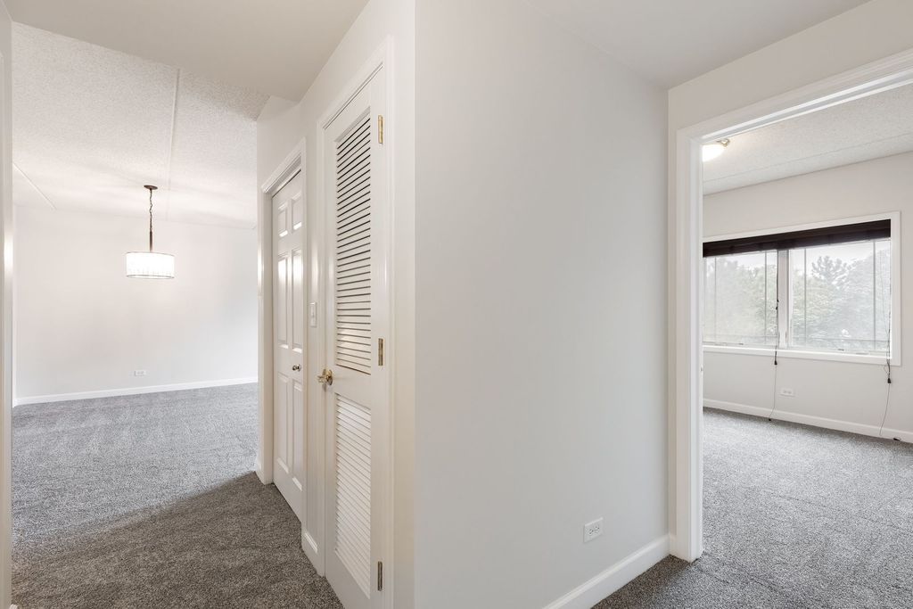 Spacious 2 bed 2 bath condo in Wolf Ridge. Great flow through kitchen/dining/living rooms to balcony with a great eastward view of the green space and Addison Creek. Separate in-unit laundry room, master suite with walk in and a huge master bath. Includes an assigned garage space with adjacent private storage room in this elevator building plus an assigned outside parking space and plenty of visitor parking. Fresh paint and new carpeting, ready to go...WOW!