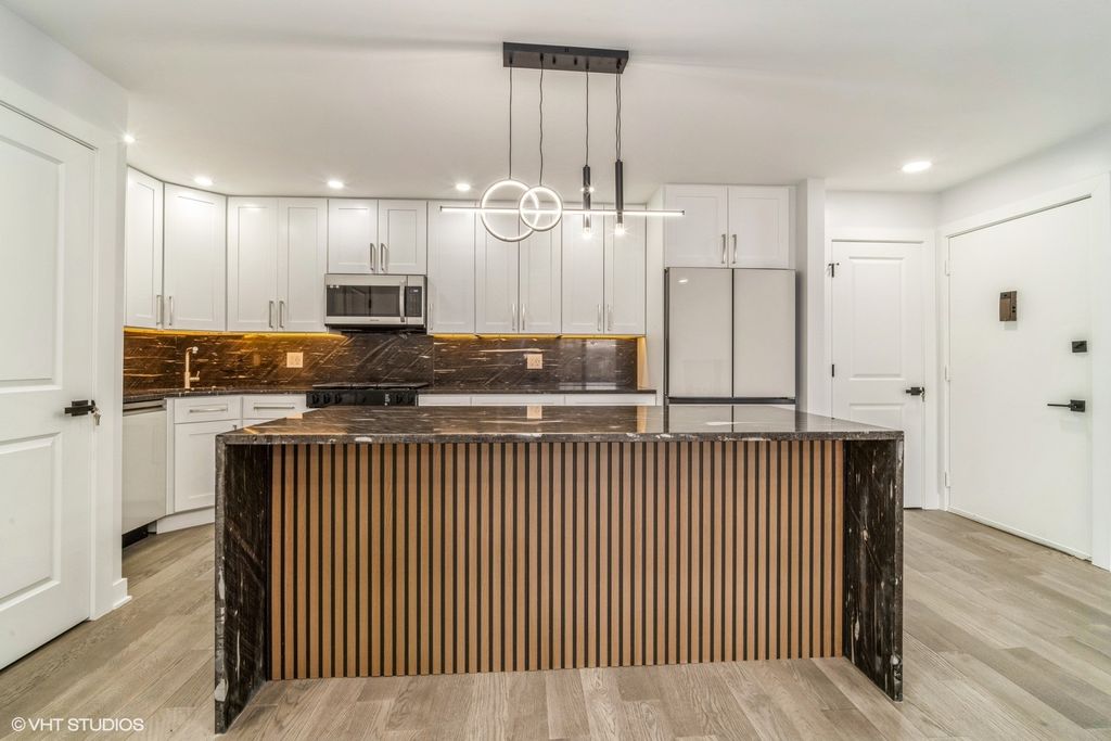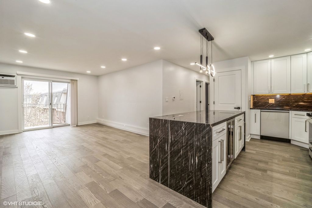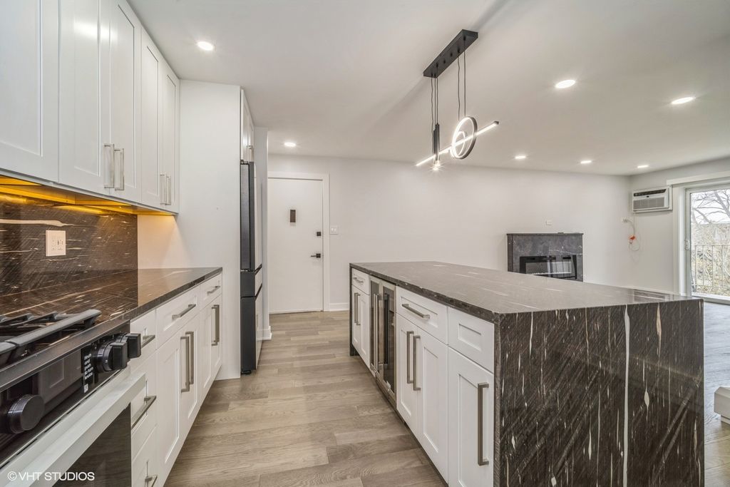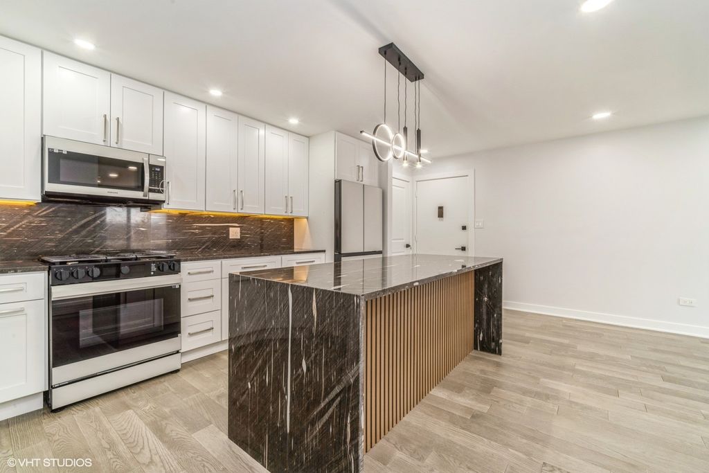 Wow! This spacious condo features 2 bedrooms and 2 bathrooms. Recently rehabbed with attention to detail and high-quality materials. The open, bright kitchen with a lot of cabinets and a large natural stone island that connects to the spacious living room. The home features hardwood floors throughout and a cozy electric fireplace. The large master bedroom includes a private master bathroom and a walk-in closet with built-in shelves. This bright, top-floor unit offers a balcony with panoramic views and enjoys abundant afternoon sunshine. The HOA covers cooking gas, heat, water, and parking. Conveniently located near expressways, Metra, bus stops, and parks, with quick access to restaurants, entertainment, and more.