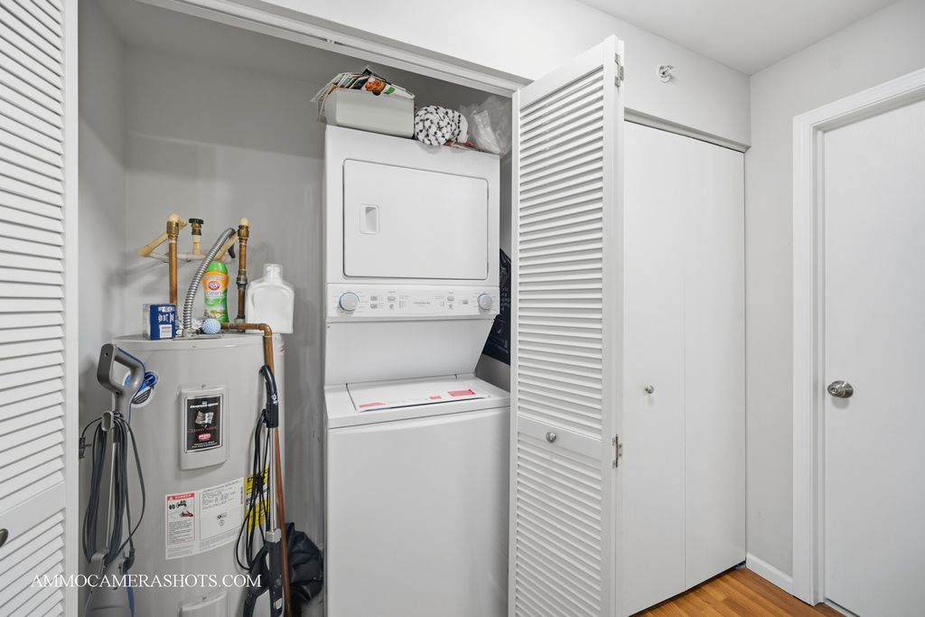 Spacious and beautifully updated 1-bedroom, 1-bath condo located in the highly desirable Bristol Bay community. This second-level home has been refreshed with new paint, white trim, carpet on the stairs 2003, stainless steel appliances 2003,smart PTAC units replaced in 2023, stackable washer and dryer, new vinyl plank flooring in the bath, kitchen, and laundry room, along with updated light and bath fixtures. Step inside through your private entrance into a bright and inviting living/dining space with vaulted ceilings, plenty of natural light, and access to a private balcony with an extra storage room. The kitchen offers ample cabinetry, a convenient breakfast bar, and new appliances, making it both stylish and functional. The sizable bedroom easily accommodates your furniture and includes a spacious walk-in closet. Additional features include a one-car detached garage plus an assigned parking space. The clubhouse community offers a pool, exercise room, jogging path, park, and party room, providing resort-style amenities right at home. Conveniently located with easy access to shopping, Route 47, and I-88, this condo is move-in ready and a perfect place to call home!