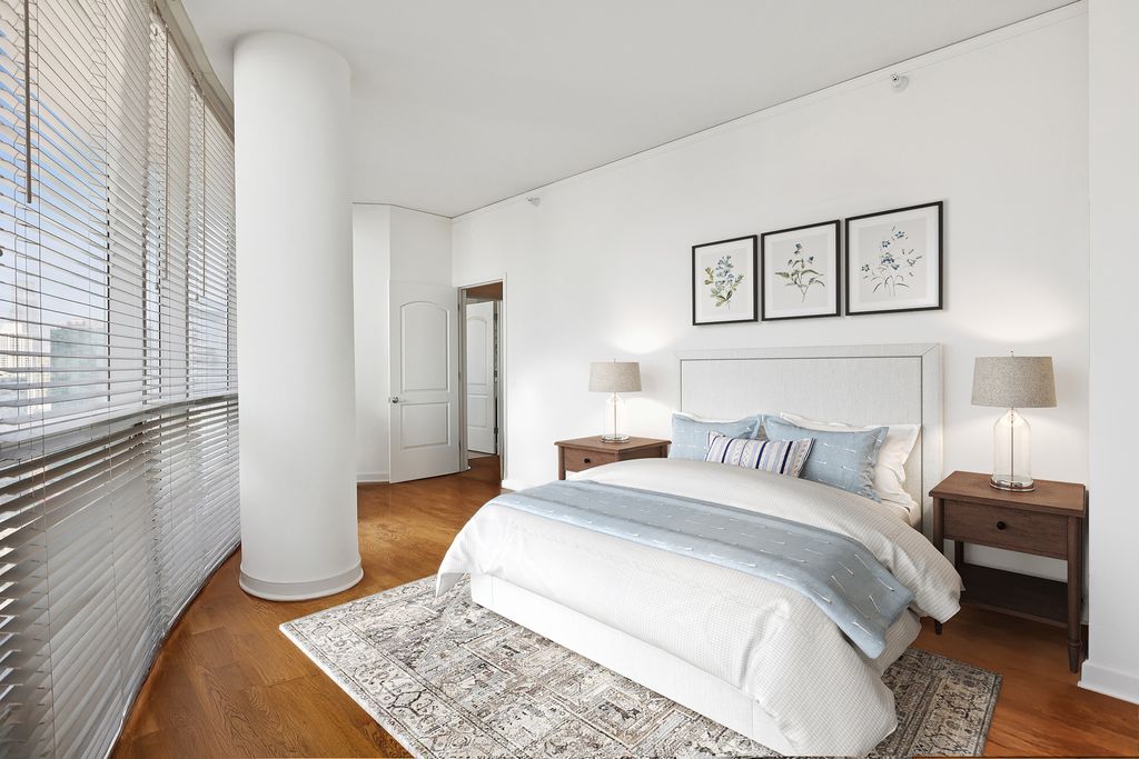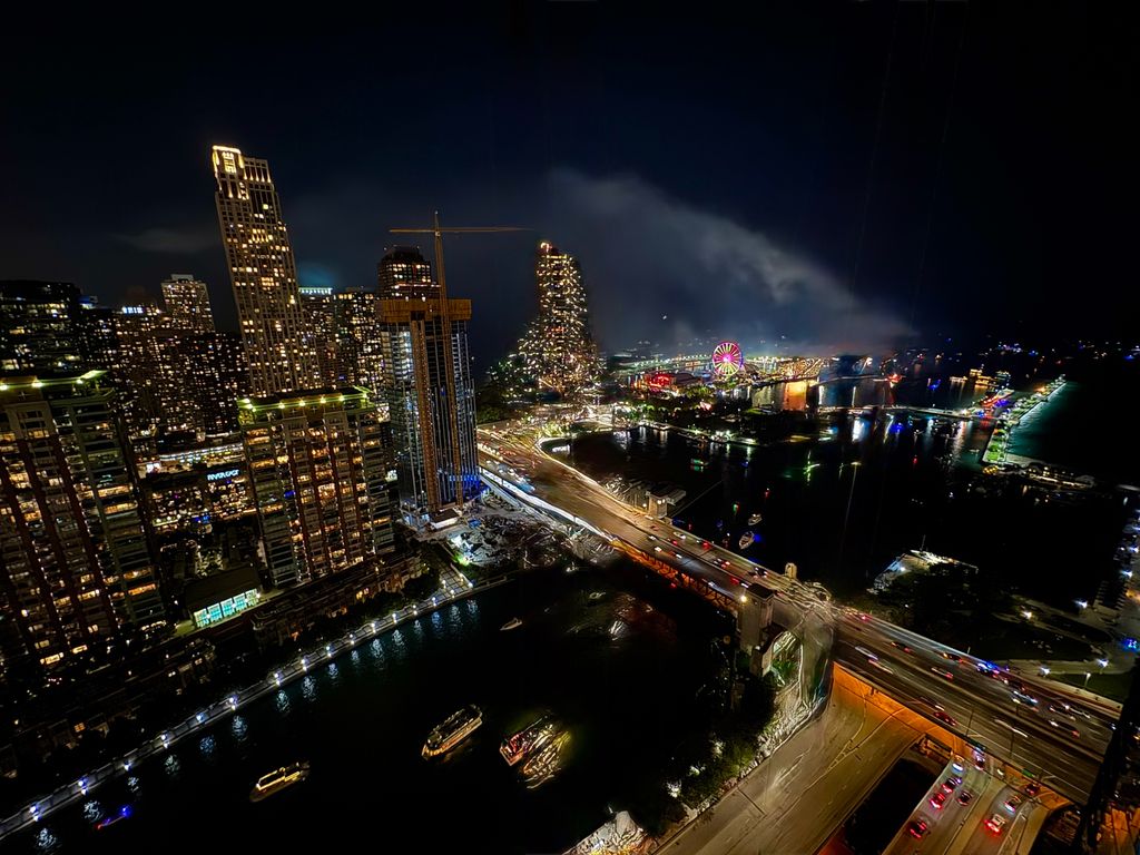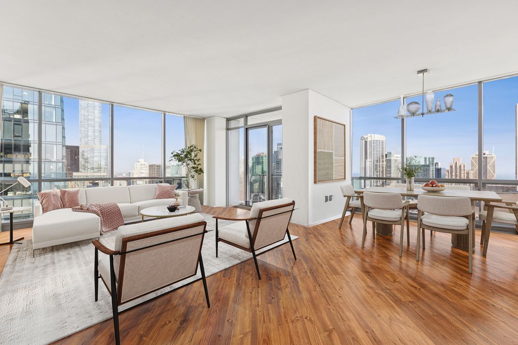 Experience luxury living high above the city at The Regatta in the peaceful Lakeshore East neighborhood. Perched in the penthouse tower of this iconic high-rise, Unit 4010 boasts an extraordinary amount of living space along with sweeping 360-degree views from wraparound floor-to-ceiling windows in every room. Two nice-sized private balconies offer outside space with gorgeous views of the river and lake. The extra-large living room incorporates space typically closed off in this tier as a third bedroom or den. It can be easily enclosed if desired. A spacious dining area could comfortably seat 8-12, and the stylish kitchen offers both a breakfast bar and space for a cafe table...with a river view, btw! The expansive primary suite features a dressing room-sized walk-in closet, and a spa-like bathroom with two vanities, soaking tub, walk-in shower, and water closet. The size of the primary bedroom offers the owner the possibility of also adding in an office area, workout space, or...? The split floor plan places the second bedroom almost in a "private wing" with its own entrance, full bath, and wall of double closets. High ceilings, hardwood floors, and panoramic views add to the elegance. (Make sure you see the stunning nighttime photos that were just taken from this unit that show the river, the lake, and the fireworks from Navy Pier.) A pretty powder room, side-by-side washer/dryer, and large front hall closet add to the convenience. The Regatta's 5000 square feet of top-tier amenities include an indoor pool with hot tub, well-appointed fitness center, newly remodeled party room, library, children's playroom, 13th floor sundeck with grills, and more. Set in the tranquil Lakeshore East neighborhood with its lovely park, you're moments from the vibrancy of Millennium Park, Grant Park, Michigan Avenue, the Theatre District, and of course, the lakefront. Mariano's is a 10-minute walk away. Deeded garage parking valued at $45K is included in the asking price-though you may never need to drive anywhere! This is easy city living at its best!