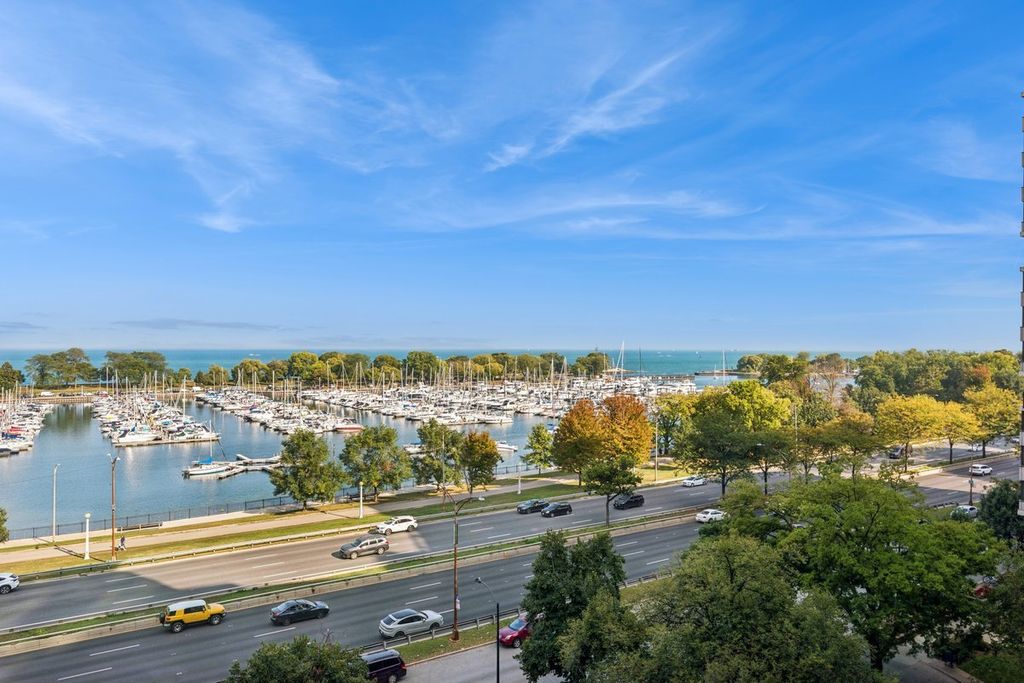 Rarely available! Large one bedroom with balcony and fabulous views of the lakefront and Belmont Harbor. Updated unit with hardwood floors, kitchen with quartz counters and undermount sink, stainless steel appliances, bath with marble shower surround. Well maintained building with 24 hour door staff, onsite maintenance and management, storage lockers, laundry room, exercise room. Building is in great condition having replaced elevators, risers, and windows. Monthly assessment includes heat, air conditioning, internet, and cable. Rental garage parking available in the building. Easy to show! Move in condition!