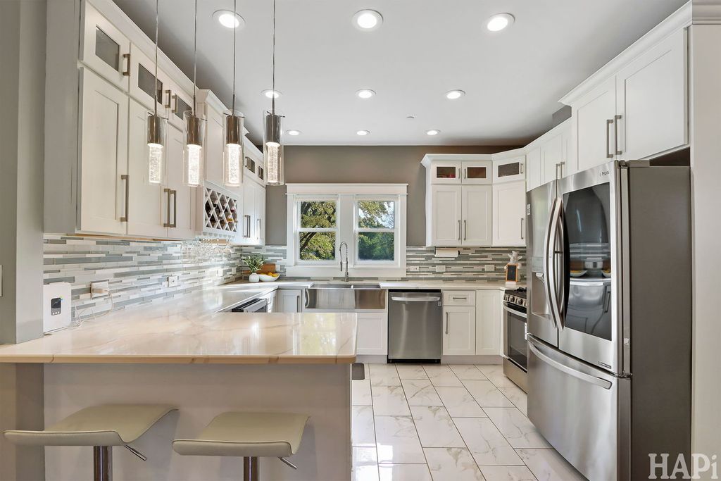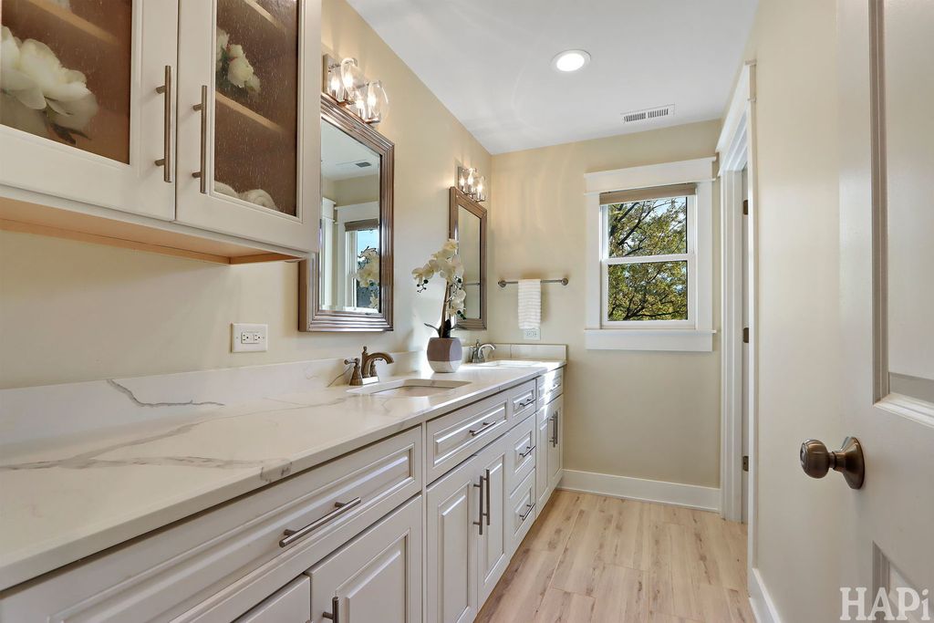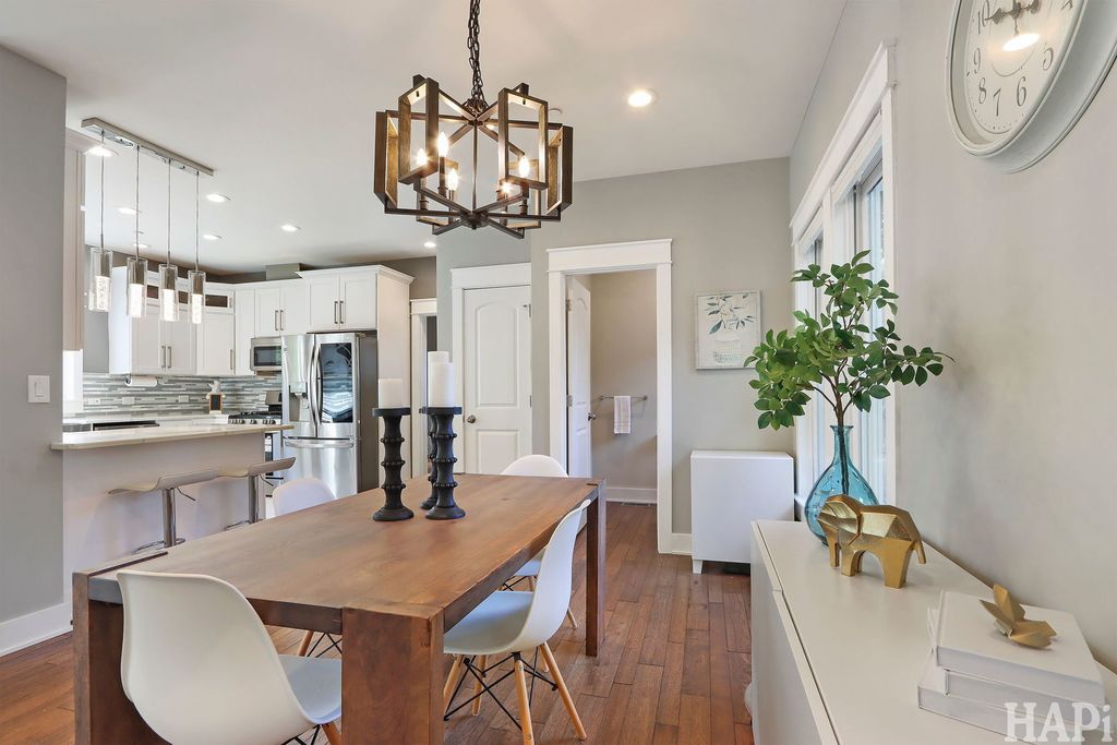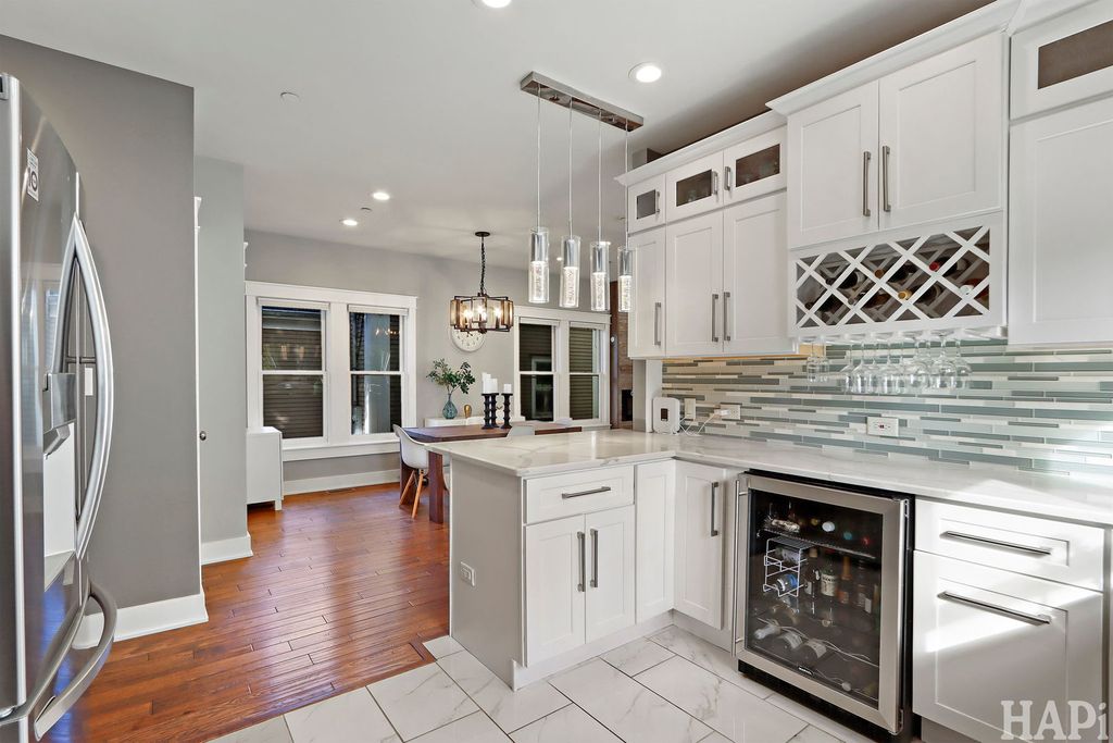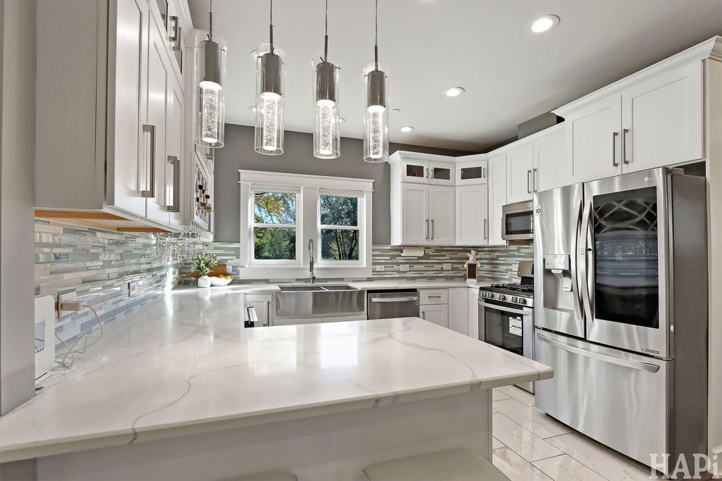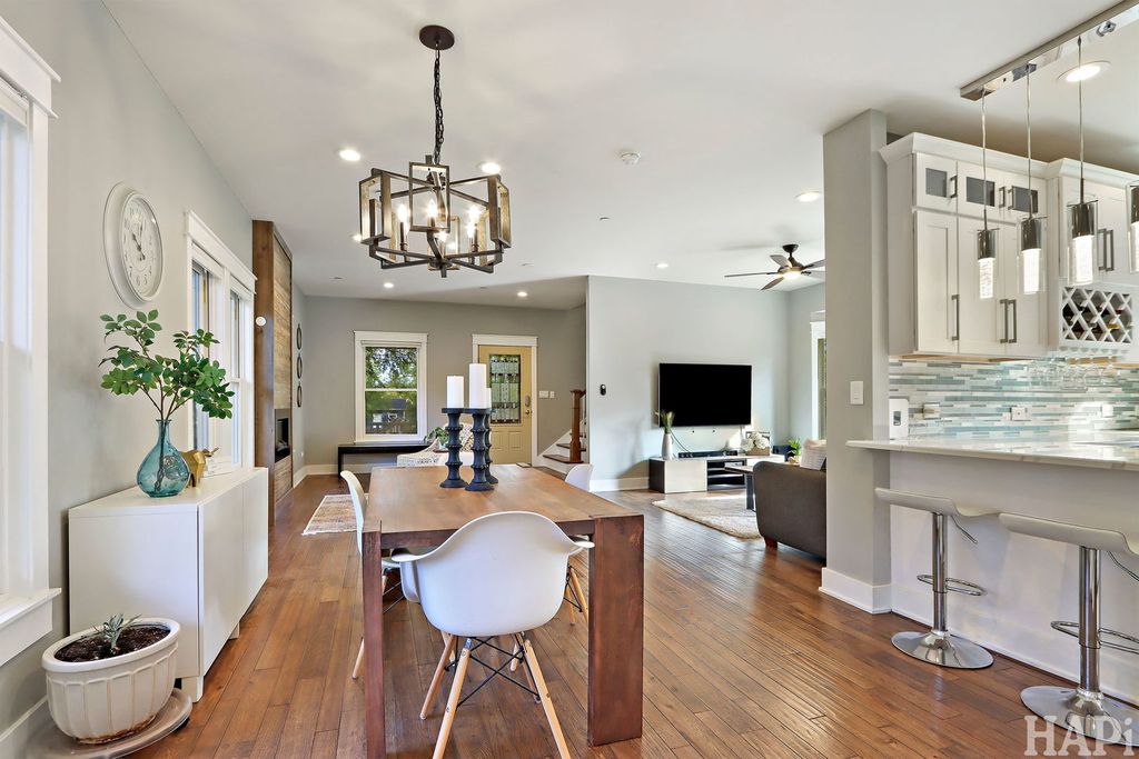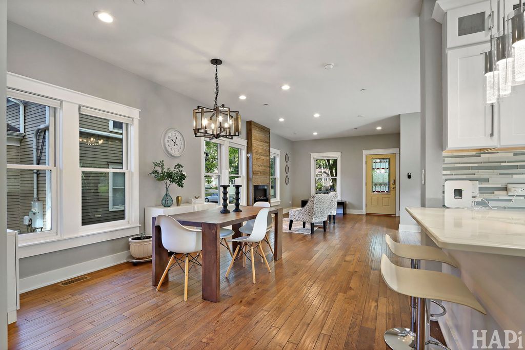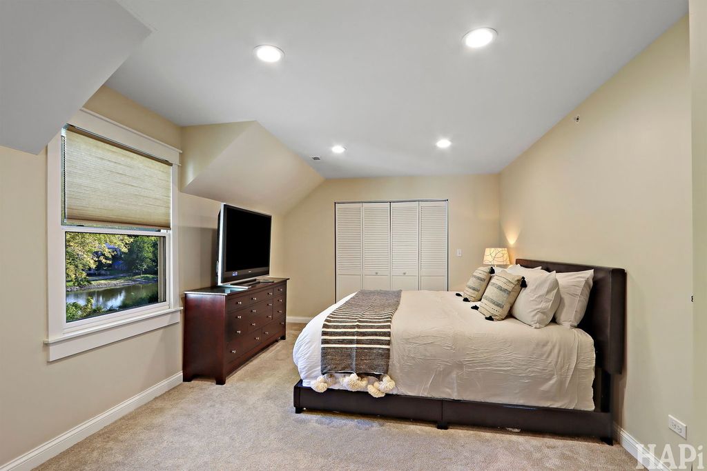 Two blocks to vibrant West Dundee boutiques, eateries, bars, and river walk. 4 bed rooms, 2.5 baths, 2 car attached garage. With views of the Fox river and kayak launch site, this 2019 custom built home offers an open floor plan with hardwood floors throughout the main level and 10ft ceilings. Front and private back staircases lead to the 2nd level, you'll find 9ft ceilings, four bedrooms, including a vaulted-ceiling primary suite with dual closets (one walk-in) and a spa-like bath featuring a soaking tub, double vanity, and separate shower. Two additional bedrooms enjoy picturesque views of the yard and the Fox River beyond. The upper level also includes a shared double-sink hall bath, laundry area, and dedicated HVAC (2019) system for added comfort. Finished basement with 8 foot ceilings offers space for a home theater, guest suite, or creative studio, complete with its own full bath and mechanical room featuring a tankless water heater and a second furnace. Outdoors, enjoy a large yard and open space. All newer appliances, windows and mechanicals. Move in and be settled in time for the Holidays!
