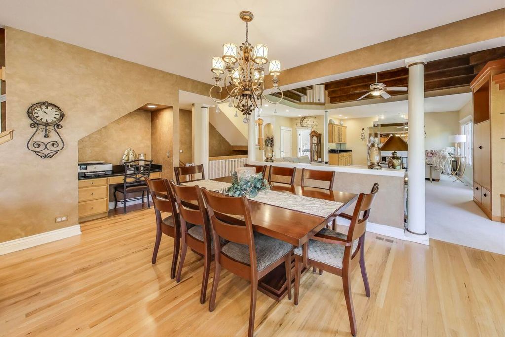 Welcome to the heart of Deer Park at 20812 North Swansway, a residence that feels cozy despite its luxurious scale. This impressive custom built single-family home offers 4,125 square feet of meticulously designed living space, featuring 4 spacious bedrooms and 5 beautifully appointed bathrooms, spread over 9 well-planned room. Upon arrival, you'll enter the home's elegant foyer, setting the stage for the sophisticated style found throughout. The residence is adorned with a harmonious mix of carpet, ceramic, and hardwood floors. Tray ceilings create a recessed architectural look that adds depth and visual interest. The ambiance is further enhanced by chandeliers and recessed lighting, creating a warm glow in every room. The gourmet kitchen is a chef's dream, complete with all stainless steel appliances including a cooktop, built in double ovens and microwave, all surrounded by premium granite counters and featuring a granite island - always a welcoming gathering spot for family and friends. Transition seamlessly to the home's family room, complete with a fireplace and perfect for family movie nights or entertaining guests. The formal dining room, thoughtfully situated near the kitchen, awaits for family gatherings and holidays. Across the hall lies the living room for additional guest seating when entertaining, or a quiet sanctuary on a restful day. The upstairs hall features two elegant staircases: one that greets you in the front foyer, and one that descends to the kitchen. The expansive primary suite features a lavish en-suite jacuzzi, separate double shower, and impressive his-and-hers custom closet. Enjoy the Juliette balcony for relaxing with your favorite beverage! Each of the three additional bedrooms has spacious walk-in closets, providing ample storage. One of these bedrooms boasts its own en-suite bathroom! The remaining two bedrooms are connected by a well-appointed Jack and Jill bathroom, ensuring comfort and functionality for family or guests. Outside is a private oasis where three sprawling brick paver patios await, perfect for alfresco dining. A brick fire pit and lush yard complete this inviting outdoor space. Situated on nearly an acre of land, this home offers an unparalleled sense of scenic tranquility. The finished basement adds approximately 2,000 square feet of additional living space, complete with kitchen and half-bath. Plus, a three-car garage provides both convenience and extra storage space. Additional features include a sprinkler system that has been maintained yearly by installer, ADT alarm system, water softener with purification, Dual furnace and Ac units replaced (2024), dual 40 gallon hot water tanks replaced (2020), well tank replaced (2022), garage flooring refinished (2018), exterior cedar painted (2025), hardwood floors resanded and refinished (2017), washer and dryer (2008), and a battery back -up system. Conveniently located within sought after Lake Zurich School District, Deer Park Mall, dining and entertainment, Metra and expressways. Experience living in a community that offers the best of both worlds - luxurious comfort within a serene setting! Make 20812 North Swansway your forever home!