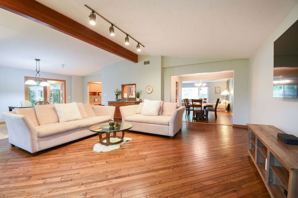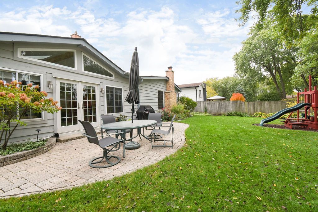 Meticulously kept 6 Bedroom / 3 Bath home blends timeless charm with modern updates. Behind the traditional exterior lies a bright, expansive interior with vaulted ceilings and a rare over-sized all-seasons Florida room. The open layout includes formal living and dining rooms, an updated kitchen with high-end stainless steel appliances, solid oak cabinets, and a large family room with fireplace and eat-in area. The sunlit Florida room overlooks the beautifully landscaped, fully fenced backyard with patio. First-floor bedroom suite with remodeled bath-perfect for guests or in-law living. Upstairs offers five spacious bedrooms, remodeled hall bath, convenient second-floor laundry, and a large primary suite with walk-in closet and private bath. Updates include new roof, new furnace, new AC, hardwood floors, dual-pane windows, and solid wood six-panel doors. Full basement extends under the addition, ready for your finishing touch. A rare, light-filled gem near parks, schools, and downtown Arlington Heights.