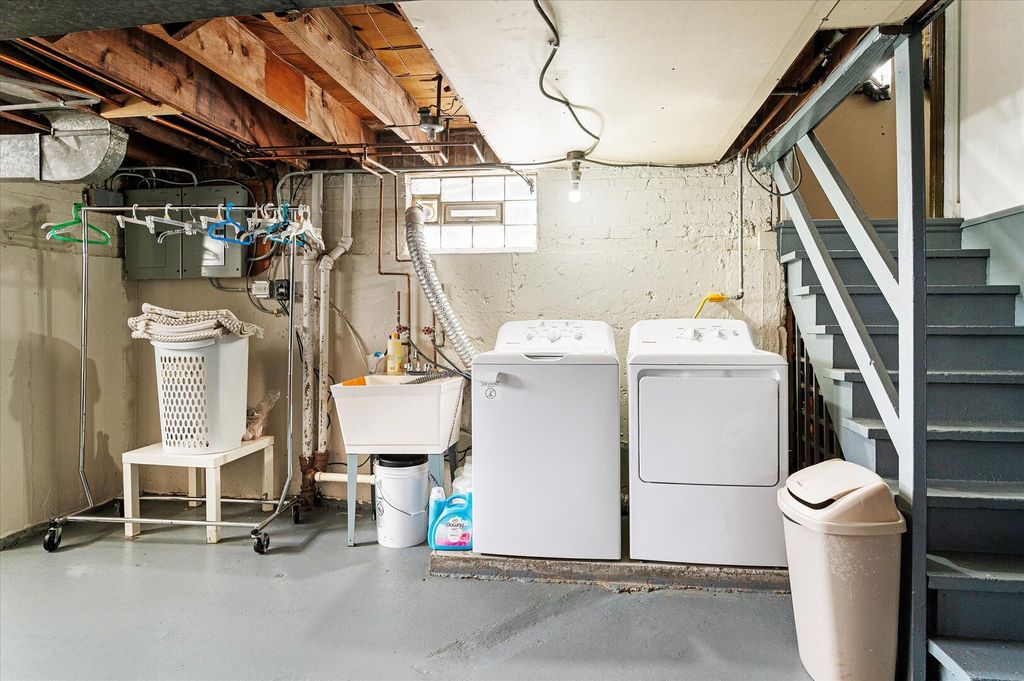 Lovely brick two flat with four bedrooms and two baths. Includes A two-car brick garage and an ample-sized yard. The basement is spacious and features a laundry area with a washer and dryer. The basement has French drains and a sump pump. Lovely building, but being sold "as is".