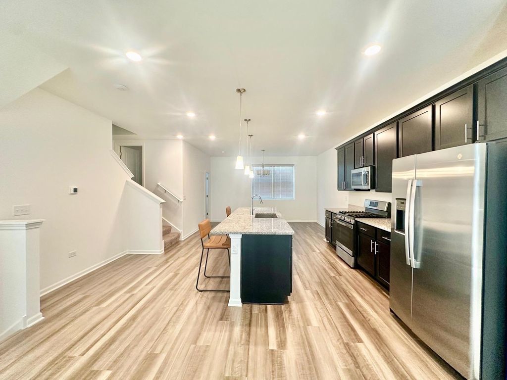Modern, Bright & Move-In Ready 4BR/3.5BA Townhouse in Grayslake! Welcome to this stunning, newly built (May 2024) 4-bedroom, 3.5-bath townhouse offering 2,100 sq. ft. of modern living on a premium lot with serene pond views. Enjoy abundant natural light, custom blinds, and a quiet location within the community. The ground-floor suite features tall ceilings, recessed lighting, and a full bath with a standing shower-perfect for a guest room or home office. The main level boasts an open-concept layout with luxury vinyl floors, a chef's kitchen featuring high-efficiency appliances, a walk-in pantry, and a 10-foot granite island, plus a convenient half bath. Upstairs, find three spacious bedrooms, two full baths, and laundry on the same level. The primary suite includes a walk-in closet and luxury bath with a standing shower, while the second bathroom offers a soaker tub and extra storage. Enjoy maintenance-free living with snow removal and landscaping covered by the HOA. Zoned to Libertyville District 70 elementary/middle schools and Grayslake Central High School. Ideally located-just a 5-minute walk to Prairie Crossing Metra (MD-N & NCS) for easy access to Chicago or O'Hare, and only 8-10 minutes to I-94. Don't miss this beautiful home-schedule your private showing today!