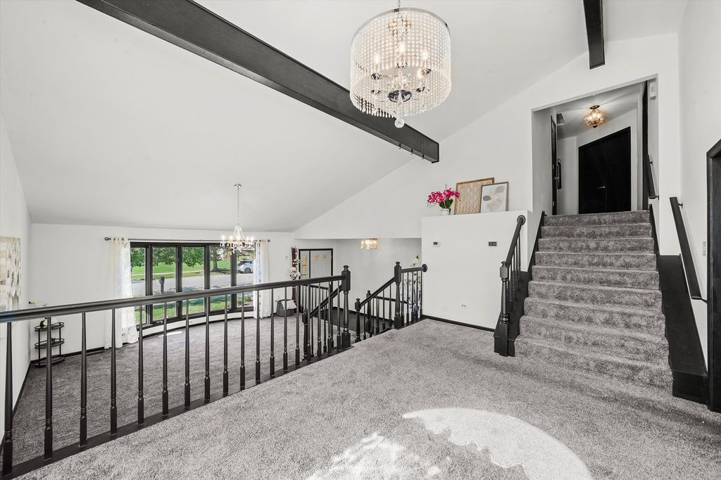 MULTIPLE OFFERS...HIGHEST AND BEST DUE BY MONDAY 10-27 8PM. FORRESTER STYLE QUAD LEVEL IN THE SOUTHWEST SUBURBS. A CONCRETE DRIVEWAY LEADS TO THIS 3 BEDROOM BRICK HOME. A COVERED PORCH WELCOMES YOU TO THE INTERIOR LONG FOYER. CATHEDRAL CEILING SOAR IN THE LIVING ROOM WITH BOW WINDOW AND DINING ROOM OF THIS FRESHLY PAINTED HOME. THE EAT-IN KITCHEN OVERLOOKS THE FAMILY ROOM AND IS EQUIPPED WITH CORIAN COUNTERTOPS, SS GE APPLIANCES, CAN LIGHTING AND FRENCH DOORS THAT OPEN UP TO THE FRESHLY STAINED DECK. THE FOCAL POINT OF THE FAMILY ROOM IS A BRICK GAS LOG FIREPLACE. THIS BIG ROOM HAS TRIPLE PANEL FRENCH DOORS THAT LEAD OUT TO A CONCRETE PATIO. THE MAIN LEVEL OF THIS HOME HAS A HALF BATH, LAUNDRY ROOM WITH SIDE DOOR ACCESS AND DIRECT ACCESS TO THE 2 CAR ATTACHED GARAGE. A WIDE STAIRCASE EXTENDS FORM THE DINING ROOM TO THE 2ND FLOOR. ALL 3 BEDROOMS HAVE CEILING FANS AND A MAIN BATH LOCATED JUST ABOVE THE STAIRS. WRAP AROUND CLOSET AND LONG VANITY ENHANCES THE SPACIOUS PRIMARY SUITE WITH FULL BATHROOM. SKYLIGHTS IN BOTH BATHROOMS BRING IN ADDITIONAL SUNLIGHT. THIS 3 BEDROOM 2 1/2 BATH HOME IS SITUATED ON A FINISHED BASEMENT WITH A 12 FOOT CEILING. THIS AREA FEATURES A REC ROOM, GAME/PLAY ROOM, UTILITY ROOM AND MASSIVE CRAWL SPACE. THE ROOF IS VERY RECENT AND WINDOWS WERE REPLACED. TINLEY PARK LOCATION OFFERS GREAT GRADE SCHOOLS AND TOP RATED ANDREW HIGH SCHOOL, CLOSE TO SHOPPING, RESTAURANTS, COMMUTING AND PARKS. SO SCHEDULE A SHOWING TODAY!