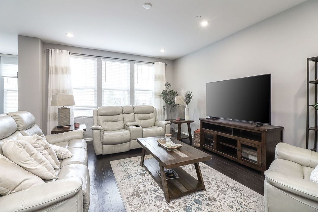 Gorgeous, open layout townhome in sought-after neighborhood. Built in 2019 by Pulte with tons of extras. Gourmet kitchen includes 42-inch Maple recessed cabinets, granite counters, hardwood flooring. Home includes rear extension, giving extra main floor living space with a sitting area or extended dining room overlooking patio. Main floor offers 9-foot ceilings, and flush-mount LED lighting throughout. Second floor ensuite features two walk-in closets, and bath with oversized showers, double bowl vanities and quartz counters. Laundry on second floor. Finished basement with high ceilings and full bath, providing tons of extra living space or possibly a guest suite. Energy efficient and spacious. Conveniently located near all the amazing things coming to Bloomingdale, as well as schools, parks, dining and shopping. This one won't disappoint!