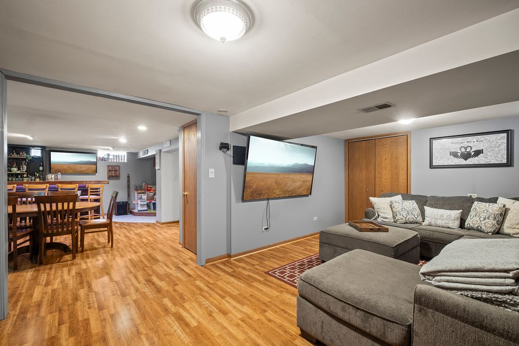 Charming Brick Home in the Heart of Evergreen Park! Welcome to this beautifully maintained 2-bedroom, 2-bath brick home nestled in the sought-after Evergreen Park neighborhood. Inside, you'll find a bright galley kitchen, spacious living areas, hardwood flooring, and a finished basement offering additional living space with a custom built bar for entertaining. This inviting property features a brand-new tear-off roof (2022), concrete driveway (2023), and a detached two-car garage for added convenience. The all-wood fenced yard features a stone bar with a built in fridge and a covered patio, the perfect setting for outdoor gatherings or relaxing evenings. 12x10 shed behind the garage, great for additional storage. Located in a top-rated school district, this home combines comfort, function, and location-making it an ideal choice for anyone looking to call Evergreen home!