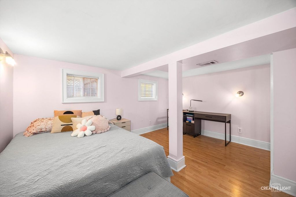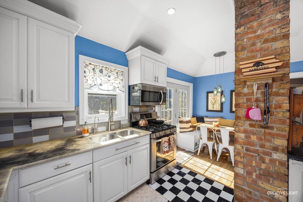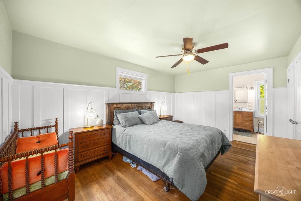 Charming 4-Bedroom, 2-bath home in Warrenville, perfectly situated on just under a half-acre lot offering space, privacy, and convenience in the desirable downtown area of Warrenville. This property offers a blend of classic charm and modern convenience, featuring hardwood flooring, white trim and doors, and a functional floor plan designed for comfortable living. Eat in kitchen with built in banket with french doors overlooks backyard oasis. Outdoor living is enhanced by a large patio with a pergola, perfect for relaxing or hosting gatherings. The property also includes a 2-car detached garage with a screen room behind it, offering additional space for outdoor enjoyment or storage. Huge family room located in the finished basement perfect for indoor entertaining. At the end of the day you can retire to the master suite. The attached bathroom boasts heated floors. Located near I-88, this home provides excellent commuter access while remaining close to schools, shopping, dining, and parks.