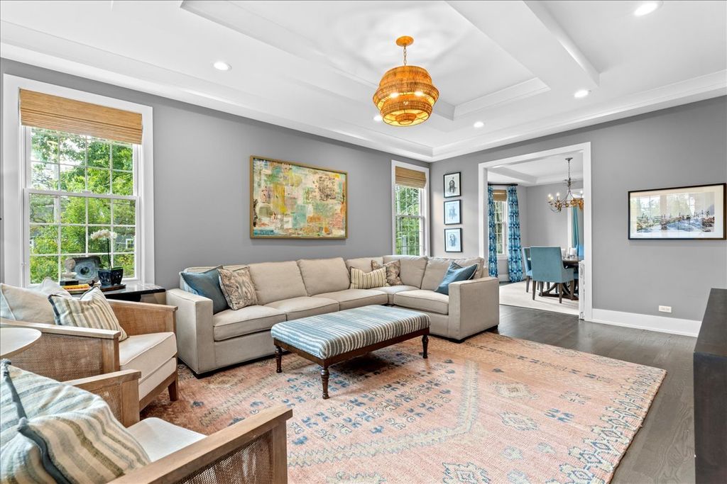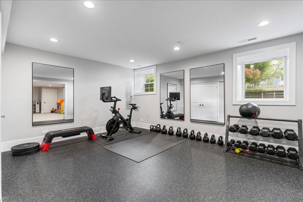 This home checks all the boxes-with an unbeatable location to match. Fully renovated down to the studs in 2019, this 4+1 bedrooms, 3.5 bathroom home has been thoughtfully upgraded and customized since, including full landscape design surrounding the house with new fencing, all creating an incredible outdoor space that's perfect for entertaining. Abundant southern exposure fills the open floor plan with light, highlighting the home's high ceilings and sleek hardwood floors throughout. The chef's kitchen is the heart of the home, outfitted with a premium Thermador appliance package, a walk-in pantry, mudroom, and dedicated office space. The second floor offers three spacious bedrooms, three full bathrooms, and a convenient laundry room. On the third floor, you'll find even more flexibility with a bonus room, additional bedroom, and ample storage. The sun-filled lower level features a large playroom and a dedicated exercise room with professional-grade gym flooring. All of this in a prime walk-to-town location-just steps from dining, parks, schools, and the Metra. Move right in and enjoy!