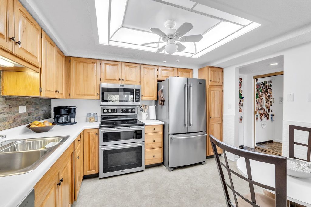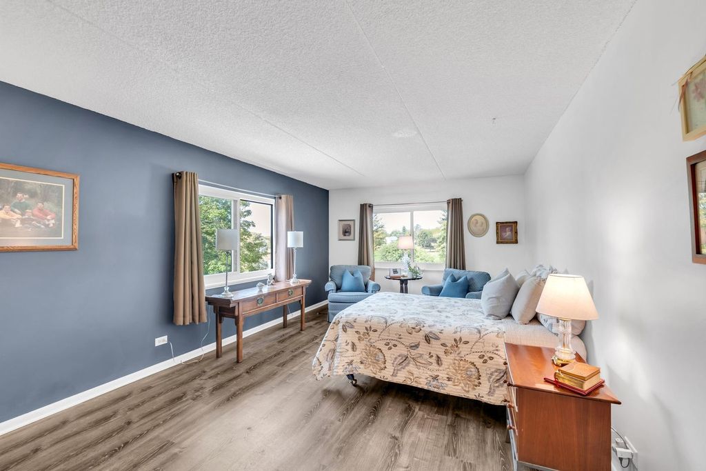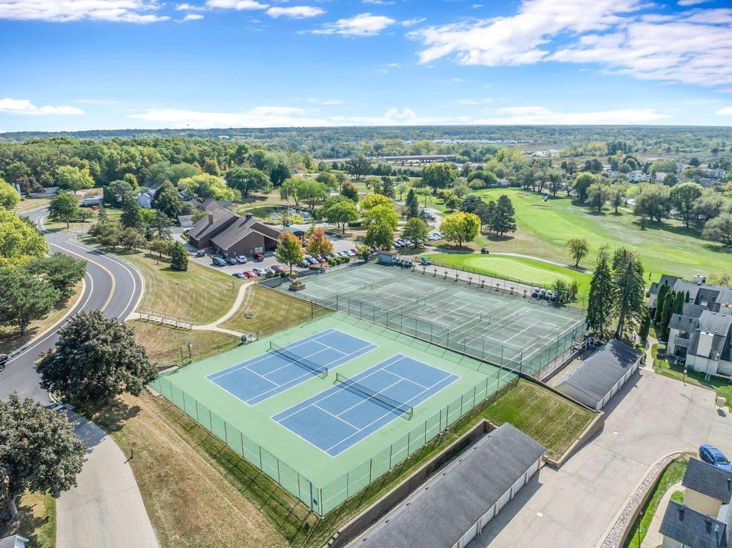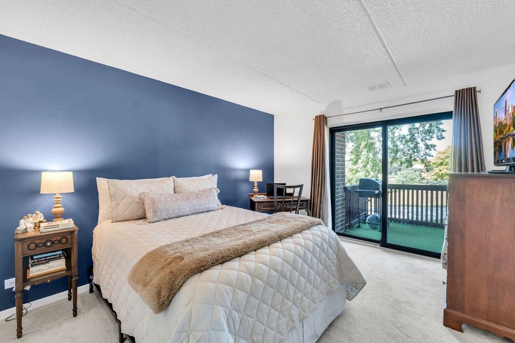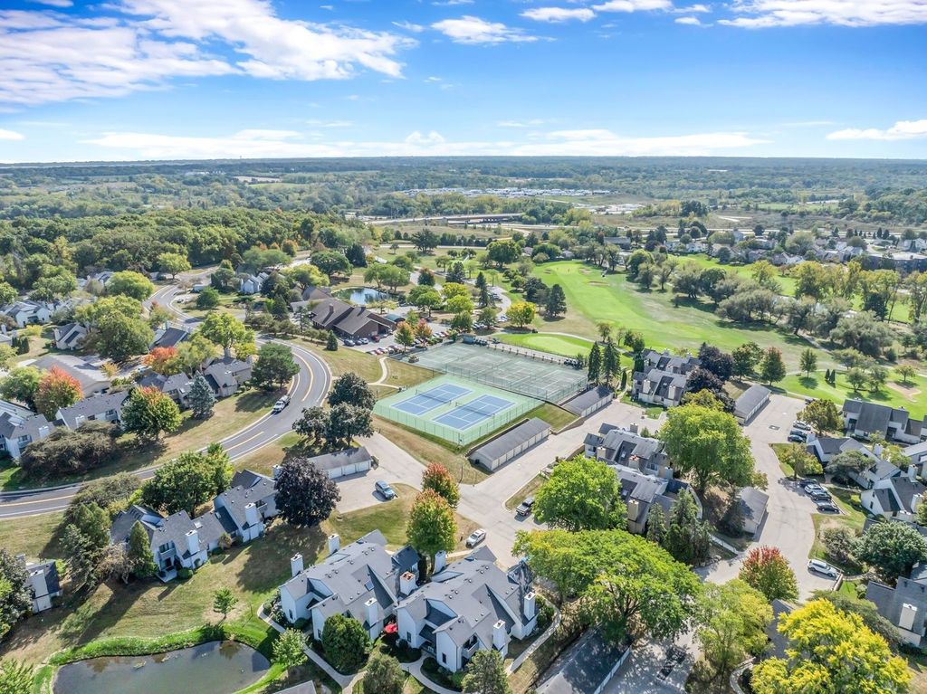 Enjoy serene golf course and pond views from this beautifully maintained first-floor corner unit in the sought-after Heather Ridge community. This light-filled 2-bedroom, 2-bath condo offers an abundance of natural light, enhanced by an extra window in the primary bedroom-a feature unique to end units. The open living and dining area flows seamlessly to a large private balcony overlooking the fairway, perfect for morning coffee or unwinding at sunset. The kitchen features classic wood cabinetry, granite countertops, and stainless steel appliances. The primary suite includes a private bath and generous closet space, while the second bedroom is ideal for guests or a home office. Heather Ridge residents enjoy resort-style amenities including a pool, clubhouse, tennis courts, golf course, walking paths, and 24-hour security within a beautifully landscaped setting. Elevator building with heated underground parking and storage closet by your space. Updates include Renewal by Andersen windows and doors (2020), stainless steel appliances (2019), kitchen flooring (2019), master bedroom vinyl plank flooring (2018), and new carpet and paint (2019).